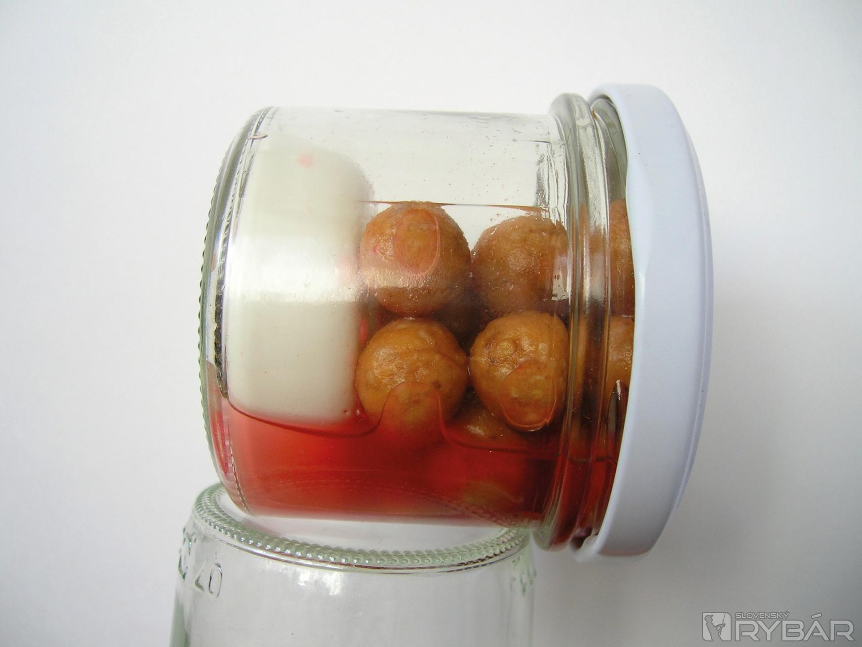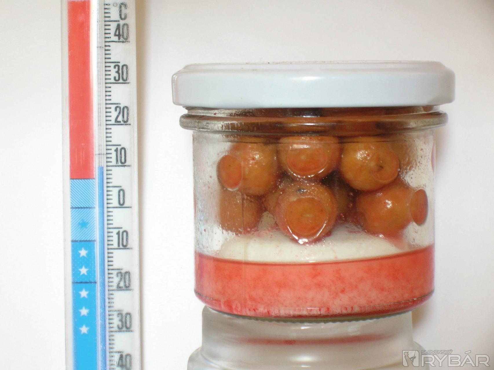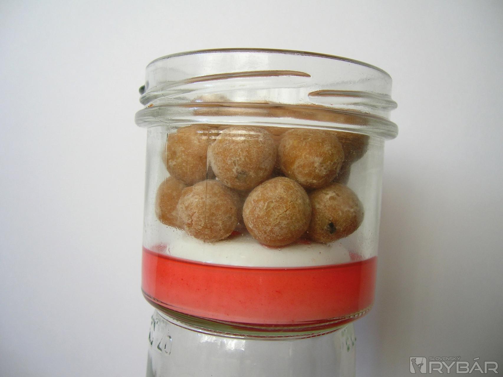 Podstata tohto postupu spočíva v chlade, ktorý pomáha úplne absorbovať dip do boilies. Nikdy nenechá-vajte boilies ponorené pridlho, pretože nadmerné množstvo zastaví studené absorbovanie. Vždy musia byť len mokré. Vrstva po vrstve. Týmto spôsobom sme získali nielen boilies nasiaknuté povrchovo, ale aj vo vnútri. Ideálne je skladovať nádobku v chladničke bez veka, čím je efekt rýchlejší.