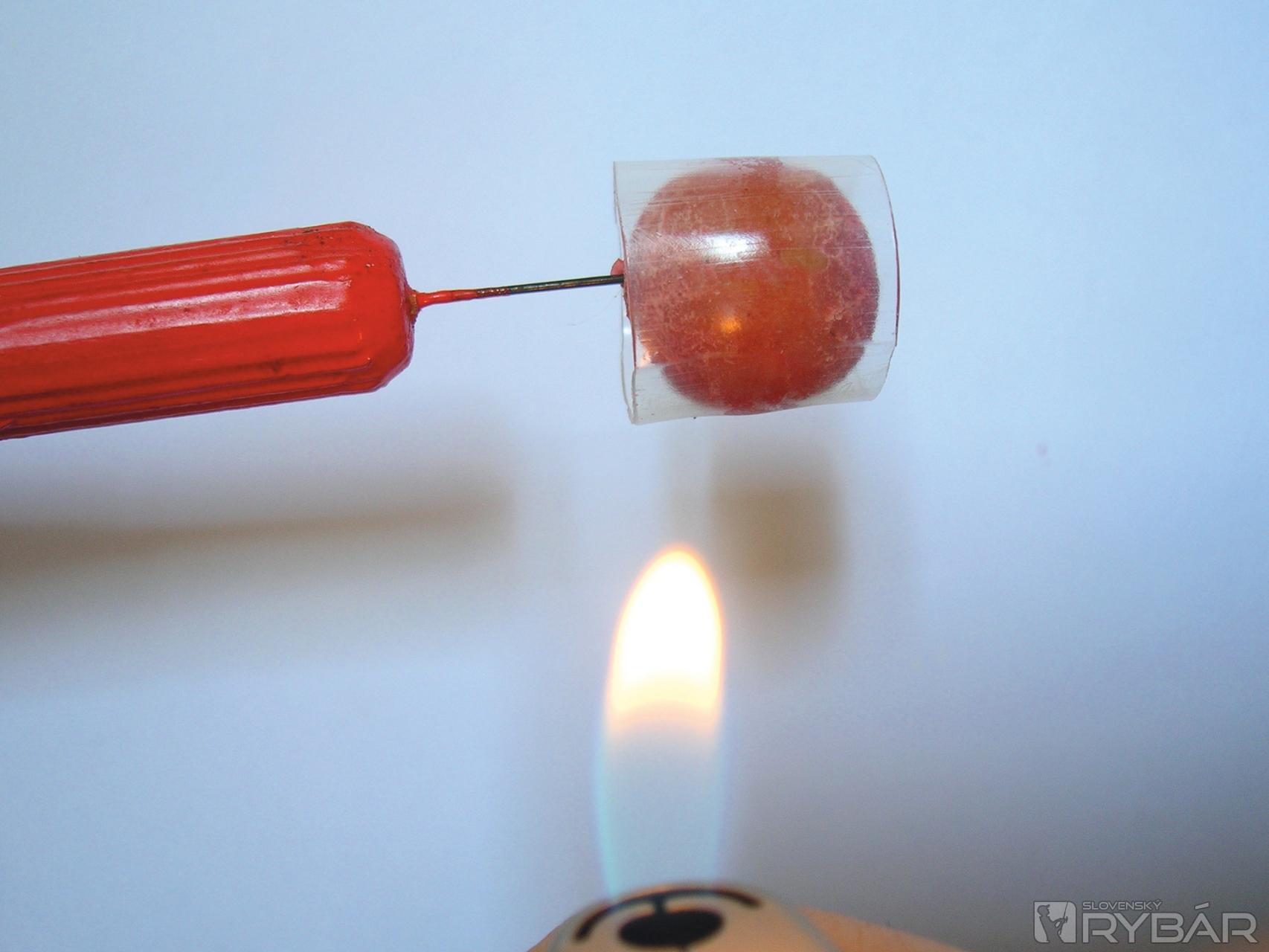 Vopred musím upozorniť, že bude lepšie súčasne neskladovať v chladničke žiadne potraviny, inak napáchnu príchuťami z boilies. Koncentrácia príchutí bude podstatne bohatšia, ak boilies nebudú obsahovať olejové komponenty, ktoré by zastavili kompletnú absorpciu. Celý systém skompletizujeme tak, že zhotovíme akúsi boilies ochranu. Použijeme na to širšiu zmršťovaciu hadičku. Tým predĺžime životnosť našej nástrahy a zabránime tomu, že ju potupne zjedia votrelci.