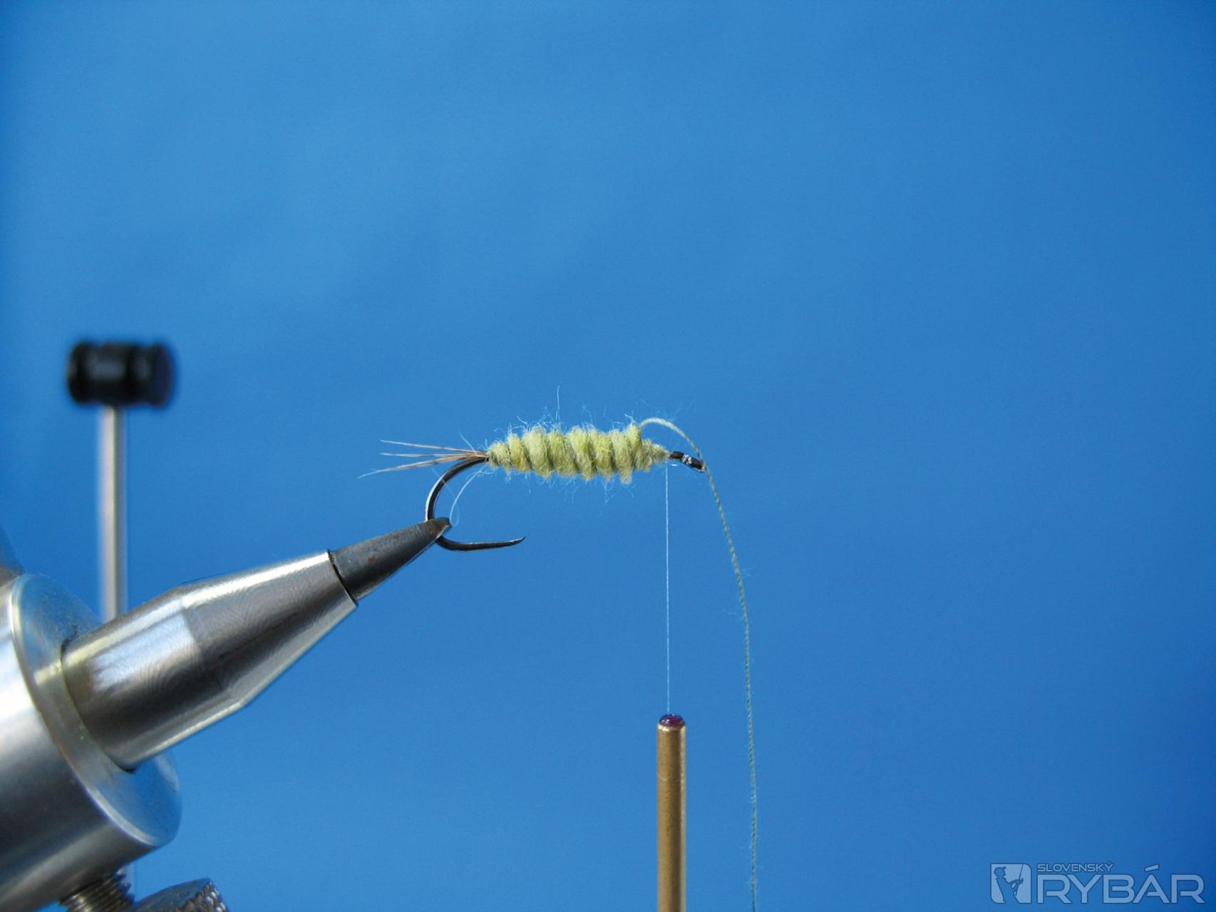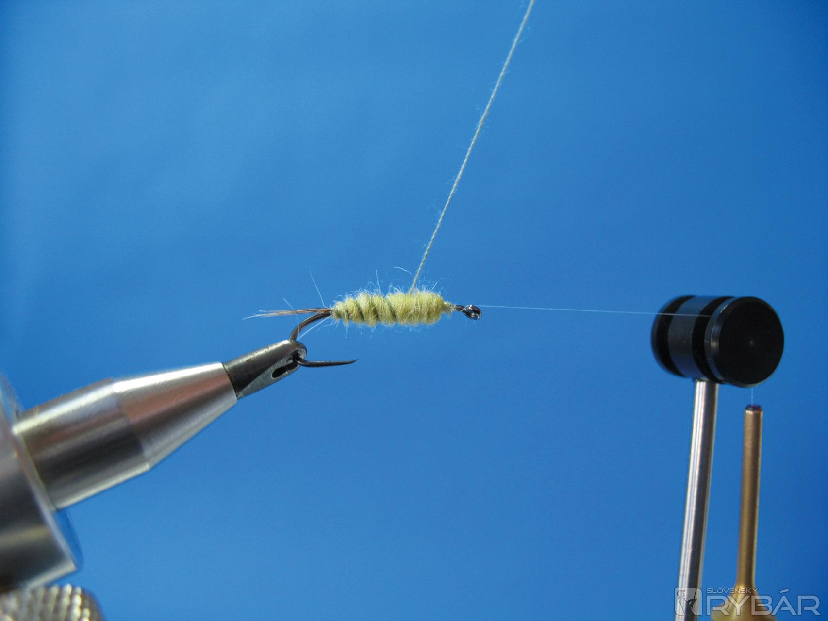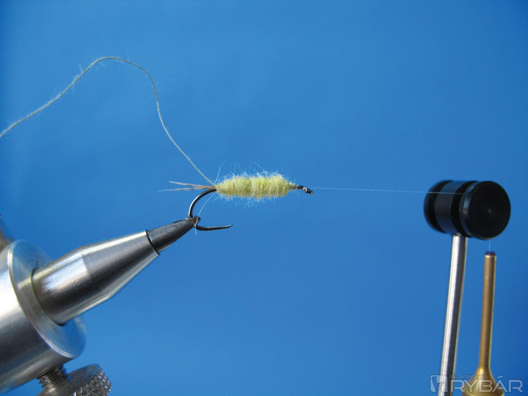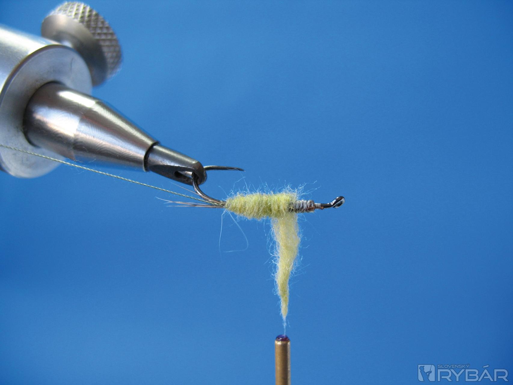 Na niť si nadubbujeme prvú časť dubbingu. Je lepšie dubbovať telíčko na dvakrát s menším množstvom dubbingu.