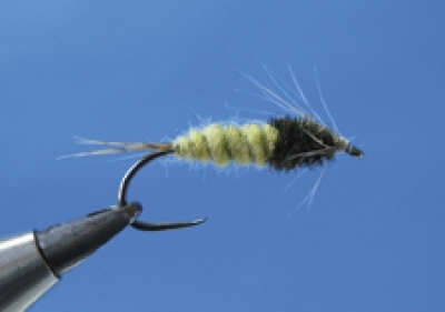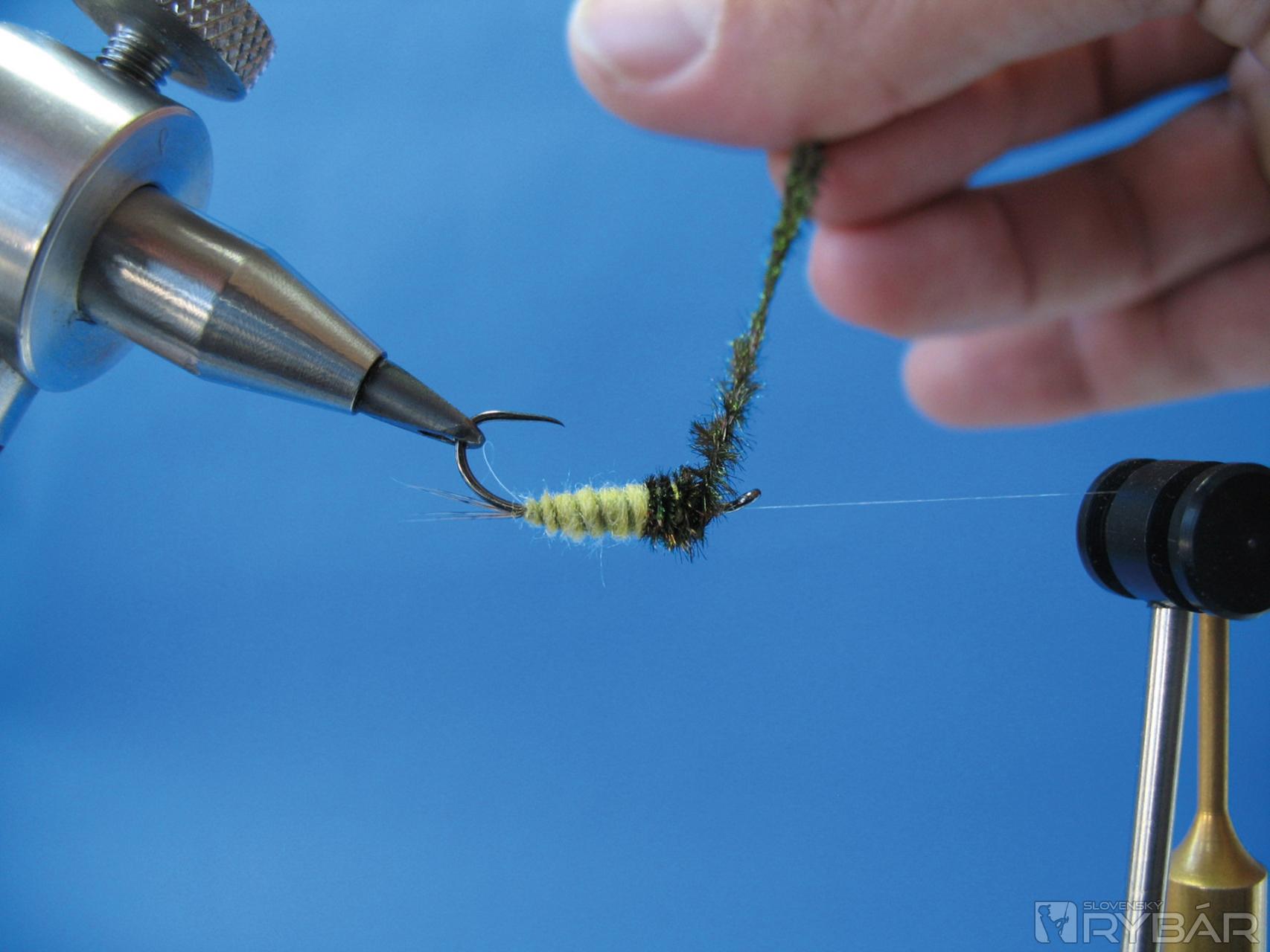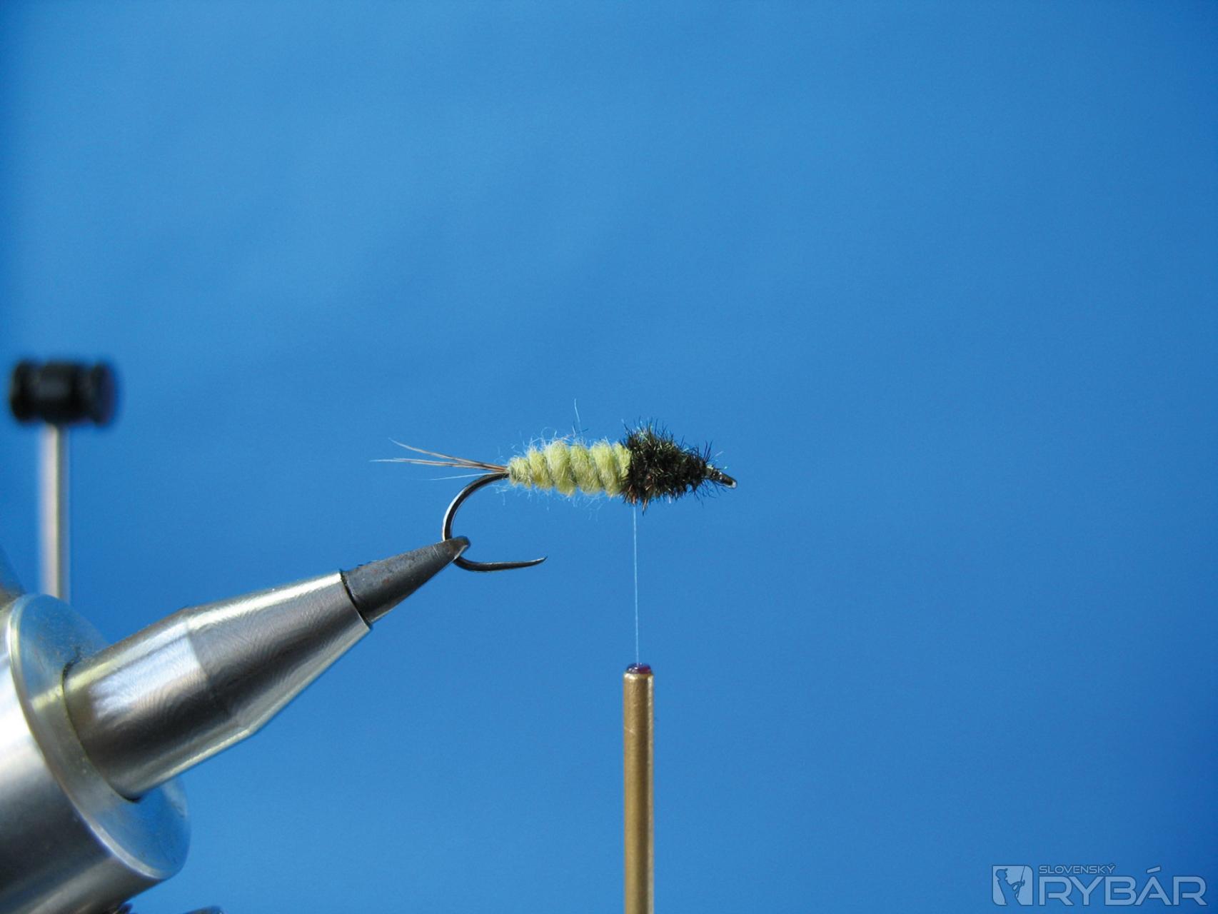 Vzor tejto nymfy viažem na háčiky veľkosti č. 6 až 8 s predĺženým ramienkom. Nymfu je dobré zaťažiť oloveným drôtikom patričného priemeru. Ak máte k dispozícii olovený pásik, tak máte sčasti vyhraté. S oloveným pásikom môžete totiž pomocou dvoch vrstiev vymodelovať kónické telíčko a potom si ušetríte prácu s dubbingom.