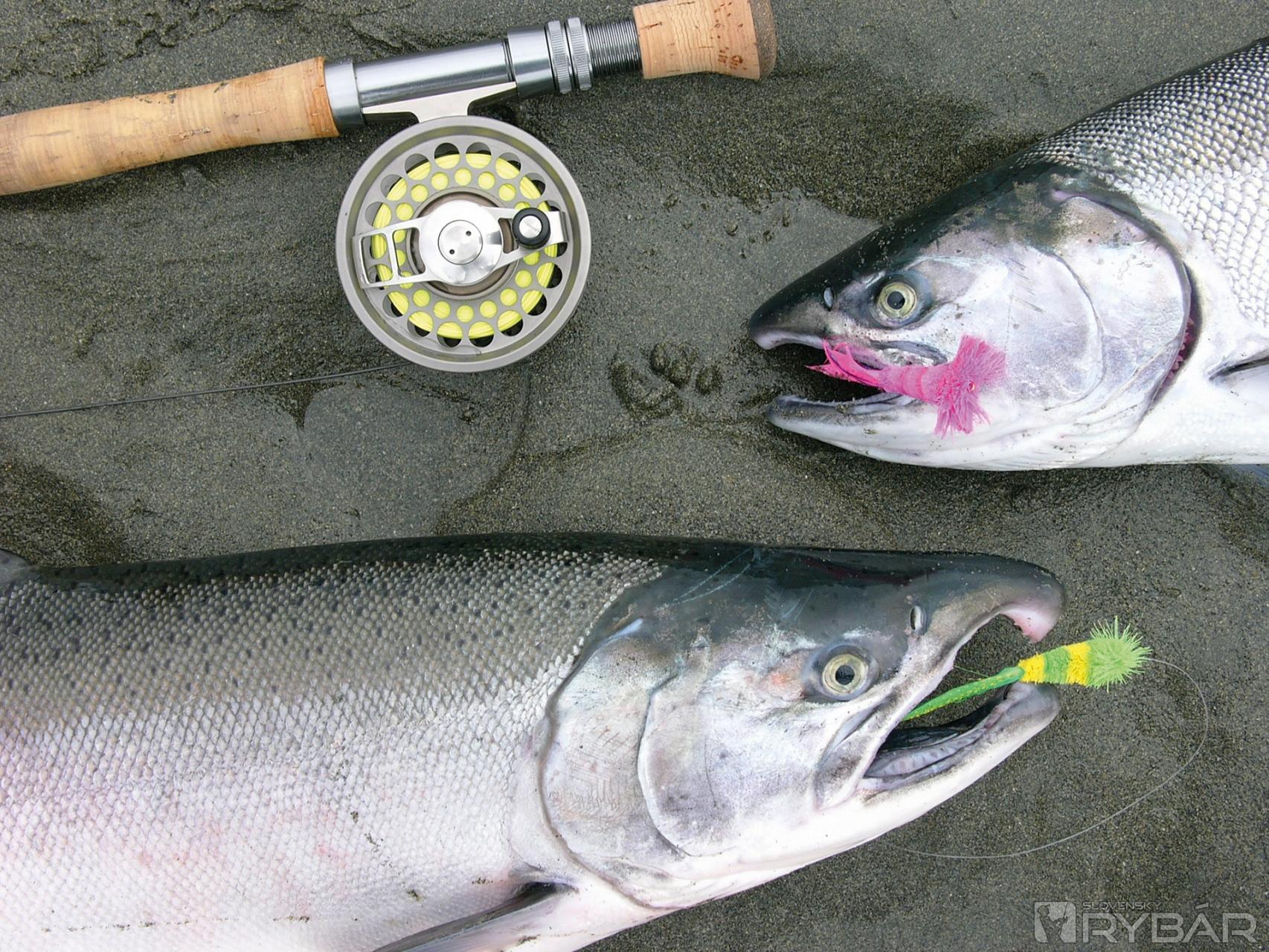 S vyhliadkou na ľahký úspech kladiem aj ja plávajúcu šnúru na riečnu hladinu. Potápavý koniec sťahuje zelenožltý strímer z pierok marabu pomaly ku dnu. Potom ráznym zatiahnutím vyrovnávam šnúru a pomaly ju vediem naprieč prúdom. Už pri druhom hode cítim prudké zatiahnutie za šnúru. Je to tu - môj prvý losos!