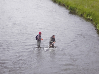 Presúvame sa s Maťom nižšie, kde v plytčine vyťahujem ešte dva jalce. Vzhľadom na počet kúpajúcich sa rozhodujem vyskúšať opačný breh. Hneď, ako sme však poprosili miestnych chlapcov, aby nešli aspoň na druhú stranu, sa traja z ich postavili, skočili do vody a preplávali na protiľahlý breh. Skúšam aspoň nepoplašenú časť druhej strany, aj keď Maťo ma presviedča, aby sme šli bližšie ku kúpajúcim.