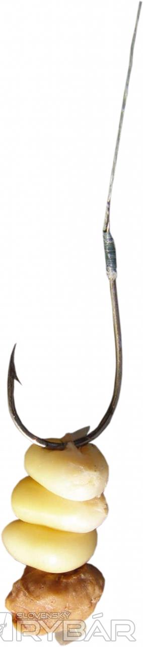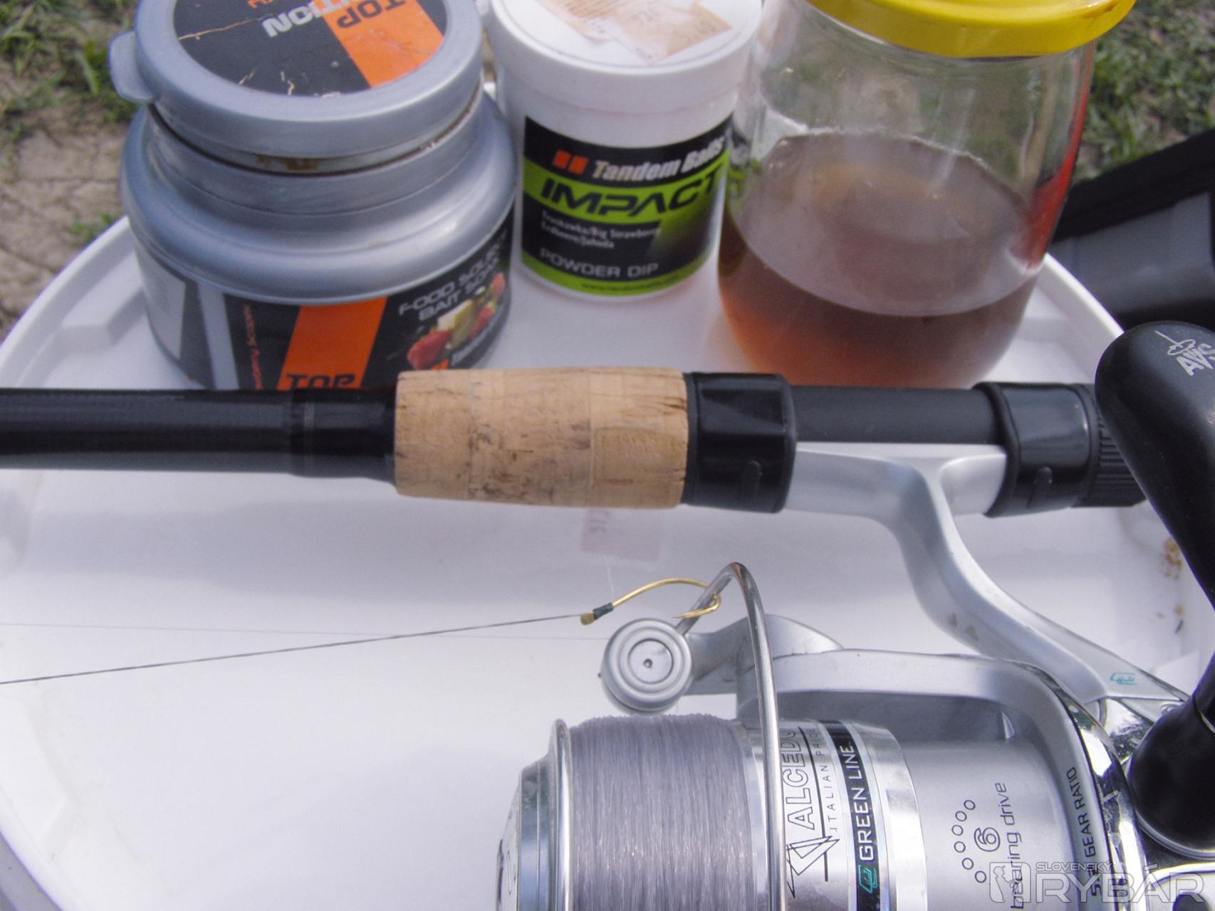 Z puzdra vyberám dva prúty. Jeden silnejší, univerzálny, vhodný na kapry, s vlascom 0,30 mm a s kŕmidlovou montážou. Druhý prút volím heavy feeder, na cievke je navinutý 0,22 mm vlasec, na ňom malé kŕmidlo so stopkou, krátka spletaná šnúra 0,10 ukončená okrúhlym mustadom strednej veľkosti.