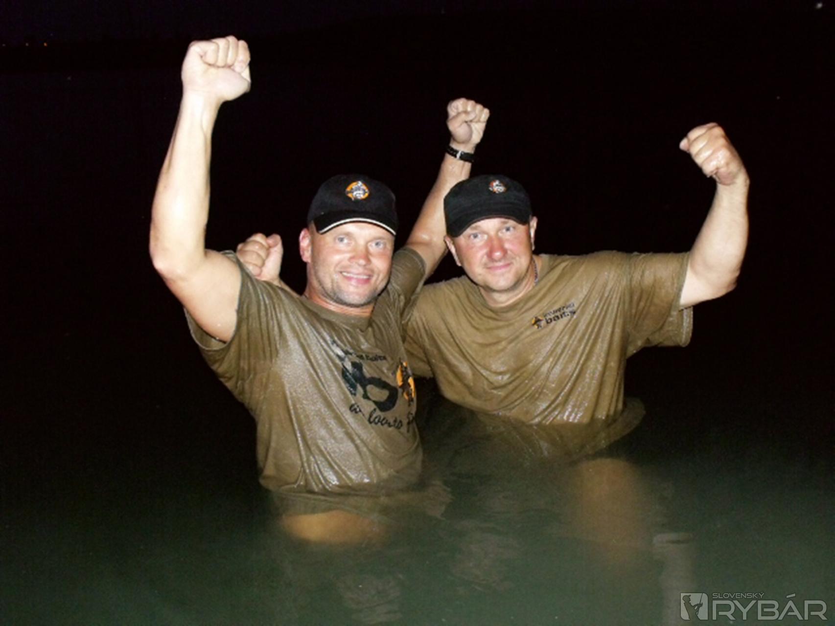 Medzitým mi však Jaro z brehu kričal, že mám záber na druhú udicu a tá bola nahodená presne tam, kde som zdolával veľkého kapra. Kričal som mu, aby rybu rýchlo vytiahol, alebo odrezal vlasec /keďže som sa bál, že sa ryby zamotajú/. Jaro nakoniec kapra vytiahol, navážil mu 14,70 kg a vravel, že tak rýchlo rybu na breh ešte nevytiahol.