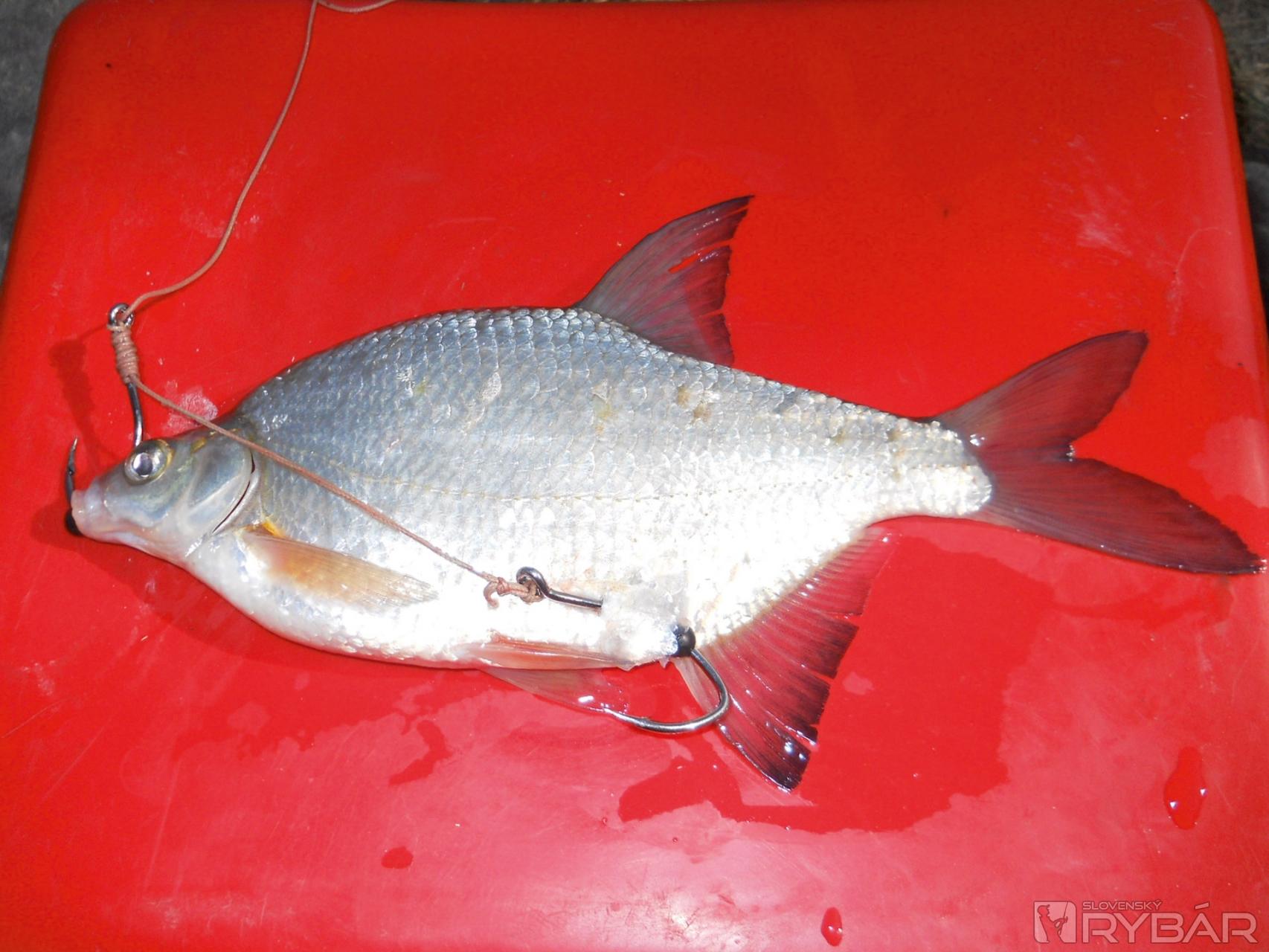 Tu si už musíme uvedomiť, že ten hák, na ktorom je nastražená rybka, je tam len na to, aby držal rybku a ten nám sumca chytí len málokedy. Celú ťarchu má na sebe práve ten jeden hák. Pri troche námahy však vieme vrchný jednohák nahradiť buď maggot klipom, alebo mne sa osvedčila sťahovacia elektrikárska páska, ktorá nám plne nahradí vrchný jednohák. Ten môžeme následne dať tam, kde má využitie a to je miesto v spodnej časti rybky: medzi prsnú a análnu plutvu.