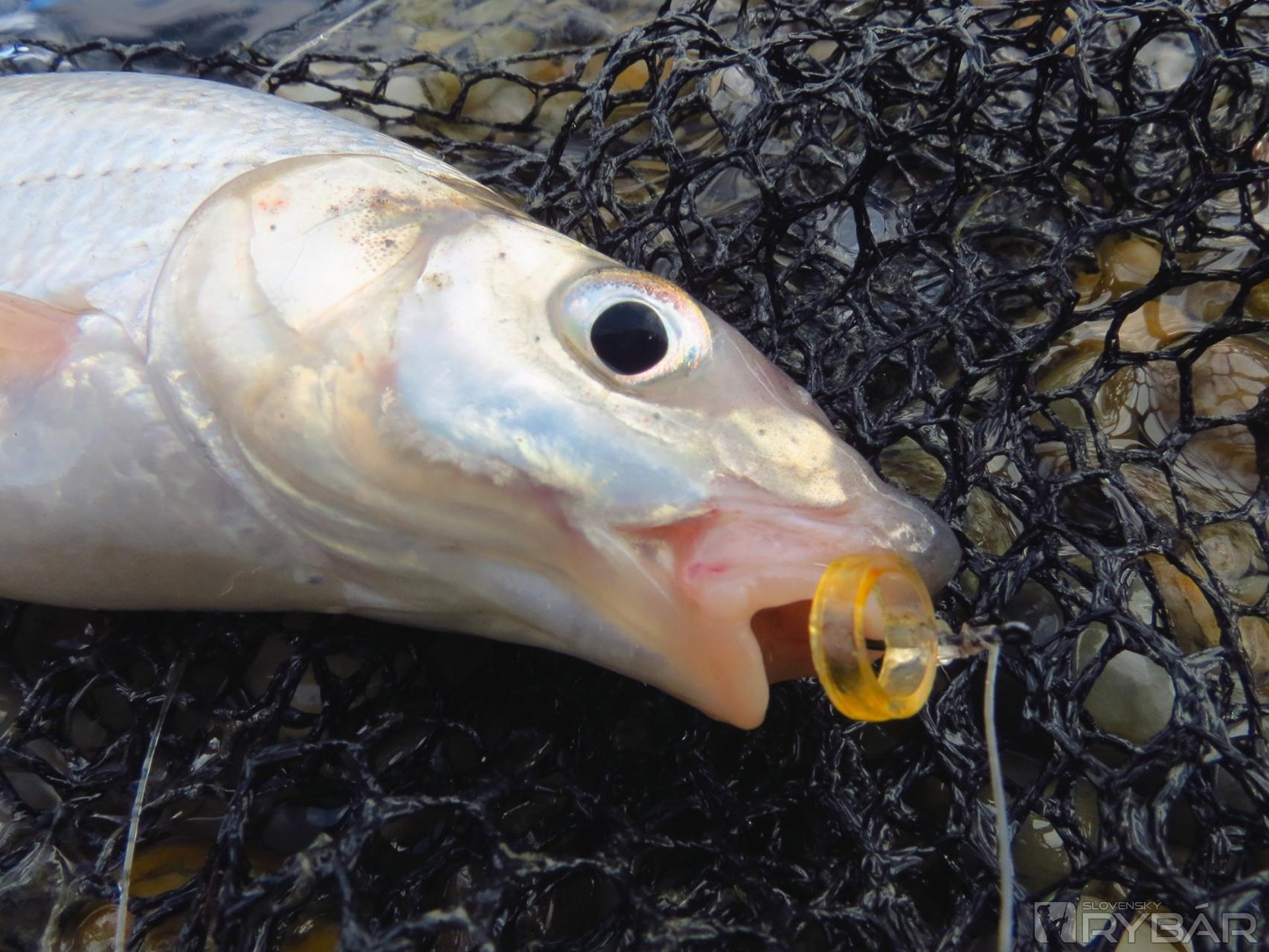 Už som to nevydržal a balím jednu udicu nastraženú na kapra a požičiavam si jeden z Ľubových tvrdých feedrov, veď trochu zábavy nezaškodí. Peter vyberá z vody maličkú rybku. Ja chcem však chytiť nejakú tú mrenu, alebo jedného z tých velikánskych pleskáčov, a tak navliekam na gumičku Queen Pellet, príchute Cesnak a nahadzujem. S obavami sledujem ako sa silon bez zastavenia pomaly presúva dolu prúdom. Tu mi Peťo vysvetľuje, že mám po nahodení nakloniť špičku udice ku hladine proti prúdu a celú zostavu takto pridržať. Košík sa zachytí na dne, a potom drží. Ihneď zostavu vyťahujem, postupujem podľa jeho rady a je to na „parádu“. Košík si našiel svoje miesto a drží na dne. Moja eufória z vidiny veľkého úlovku však rýchlo upadá, keď z vody vyťahujem malého nosáľa... Peter striedavo vyťahuje menšie aj väčšie pleskáče, nosále a plotice. To už však pri nás sedia Ľubo s Duškom a všetci štyria sledujeme dve špičky týčiace sa k nebu. Zo všeobecnej debaty ma vytrhne prudko sa ohýbajúca špička a zavrčanie cievky. Hm, na tú cievku som nemal zabudnúť, školácka chyba ma pripravila o rybu. Vymotávam zachlpený silon a popri tom počúvam pár, pre niekoho vtipných poznámok. Po chvíli sa situácia zopakovala, ale aj napriek tomu, že už neomylne chytám povolenú brzdu, moja reakcia je pomalá a ryba sa vypína. Peter našíva potápavú Queen Pellet príchute Chilli Con Carne. Po chvíli je na brehu pekná mrena a pár väčších pleskáčov. Jednoducho, kto to vie, tomu všetka česť.