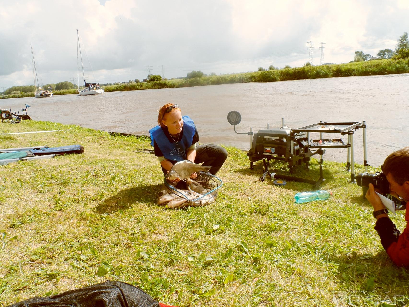 V druhej polovici pretekov sa počasie akosi umúdrilo, vykuklo slniečko a hneď bolo veselšie. Dôvodom na radosť nebolo len slniečko, ale aj informácia českého reprezentačného trénera, že podľa priebehu pretekov dievčatá siahajú na zlato. Poslednú hodinu pretekov som opäť vytrvalo bola s Klárkou a sledovala som, ako krásne zdoláva jedného pleskáča za druhým. Diváci sa jej zakaždým odmenili búrlivým potleskom. Zaujímavé bolo to, keď diváci kládli otázky, odkiaľ sú tie šikovné rybárky. Po odpovedi, že sú to Češky, odpoveď vnímali takto : „Áno Čechoslovakia.“ Bolo to krásne. Českí kolegovia odpovede Holanďanov potvrdili a povedali, že aj oni to tak cítia, že sme „Čechoslováci“ a nik nás nemôže rozdeliť. Čas plynul a zaznel záverečný signál. Čakali sme na váženie. Dúfala som, že Klárka bude v sektore prvá. Moje očakávanie sa naplnilo. To bolo radosti, keď váha ukázala viac ako 9 kg. Desiatky fotografov a kamier zachytávalo Klárku aj s ulovenými rybami. Nasledovali gratulácie a neopísateľná radosť. Aj ja som sa tešila z jej víťazstva v sektore a bola som jednou z jej prvých gratulantov, i keď výsledková listina ešte nebola zverejnená. V hodnotení jednotlivcov jej tento krásny výkon zaistil tretie miesto na stupni víťazov.
