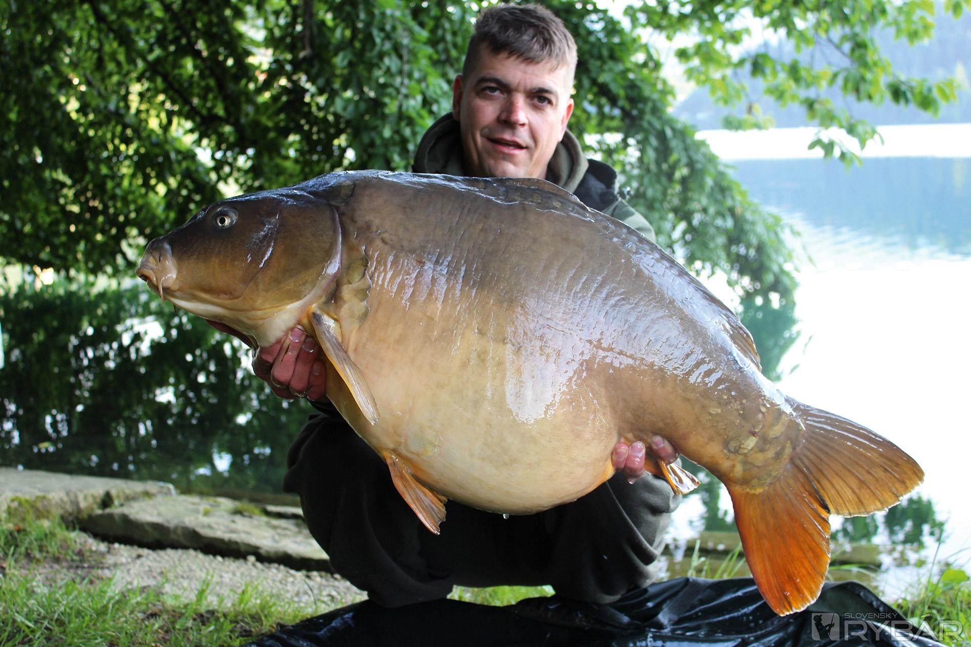 Na ďalší záber nečakám dlho a pomalá jazda naznačuje krajšiu rybu. Rybu dosť nezvyčajne otáčam už po desiatich metroch (čo na tejto vode nebýva zvykom) a začínam zdolávať. Kolegovi vravím, že mám asi menšieho kapra. Lenže čím je bližšie, tým viac mi oťažieva udica. Keď som kapra uvidel po prvýkrát pod nohami, v momente sa mi roztriasli kolená a v duchu sa modlím, aby všetko vydržalo tak ako má. Len aby som o túto rybu neprišiel. Kapor začína bojovať až pri brehu a po ďalších desiatich nekonečných minútach si môžem vydýchnuť a povedať, všetko to stálo za to! Už len kvôli tomuto momentu.