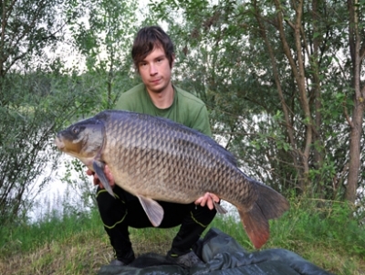 Kapra som postupne dostal ku brehu a prvýkrát ho skúsil dvihnúť. Potom, čo sa zjavil tmavý chrbát, som zmeravel. Vedel som, že súboj tak skoro neskončí. Nasledovali ďalšie minúty zdolávania a neomylné podobratie kapra priateľkou. Neveril som vlastným očiam... prvá ryba na novej vode a hneď takáto?