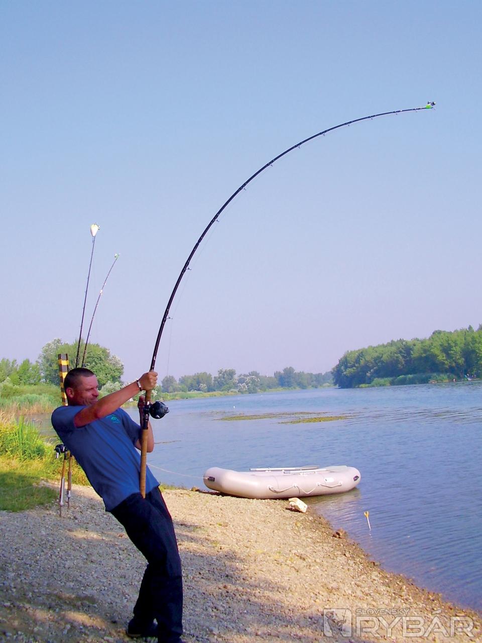 Druhá možnosť je čln. Tu všetko sedí takisto ako pri brehu, ale okrem iného musíme rátať s tým, že ryba nielen chce, ale aj prepláva pod čln. Nemá význam silou-mocou sa držať toho, že keď je môj prút takto ohnutý, tak tá ryba musí vyjsť hore. Tak to nie je, ona si pekne prepláva pod čln, zníži uhol vlasca k prútu a hrdosť je preč. Alebo prereže vlasec na spodku člna.