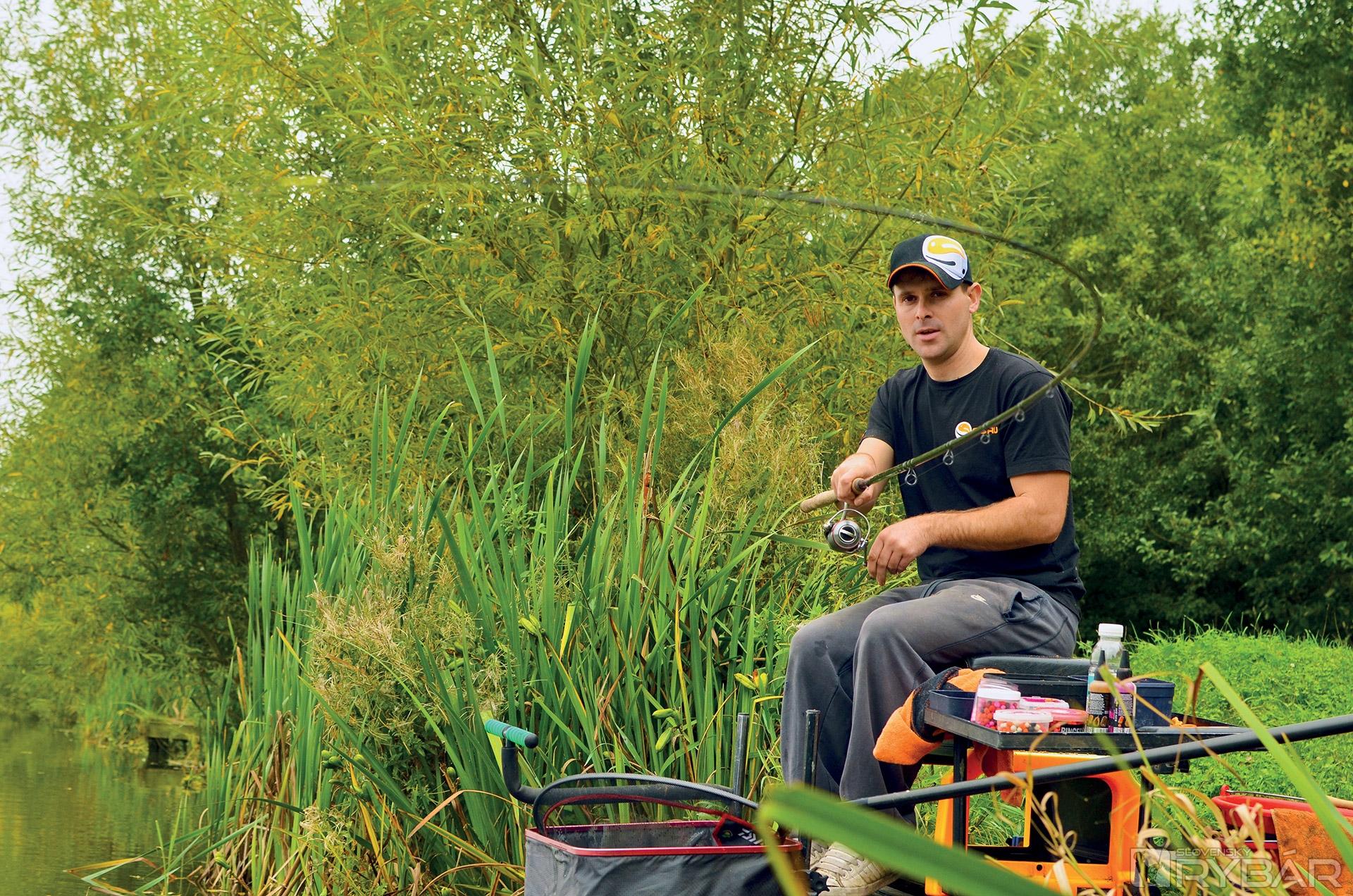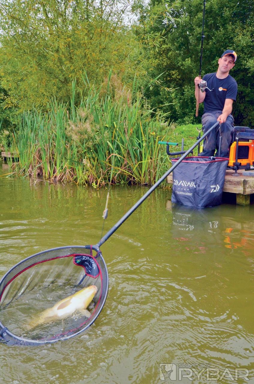 Vidím pohyb a netrvá dlho, keď sa špička prúta pekne ohne. Zdolávam prvého kapra. Pod vodou to zavrie a potom podoberám pekného riadkáča s hmotnosťou okolo 3 kíl. Je v dobrej kondícii s peknými okrúhlymi šupinami. Vlasec mám zaklipovaný, a tak o chvíľu nahadzujem do rovnakého miesta.