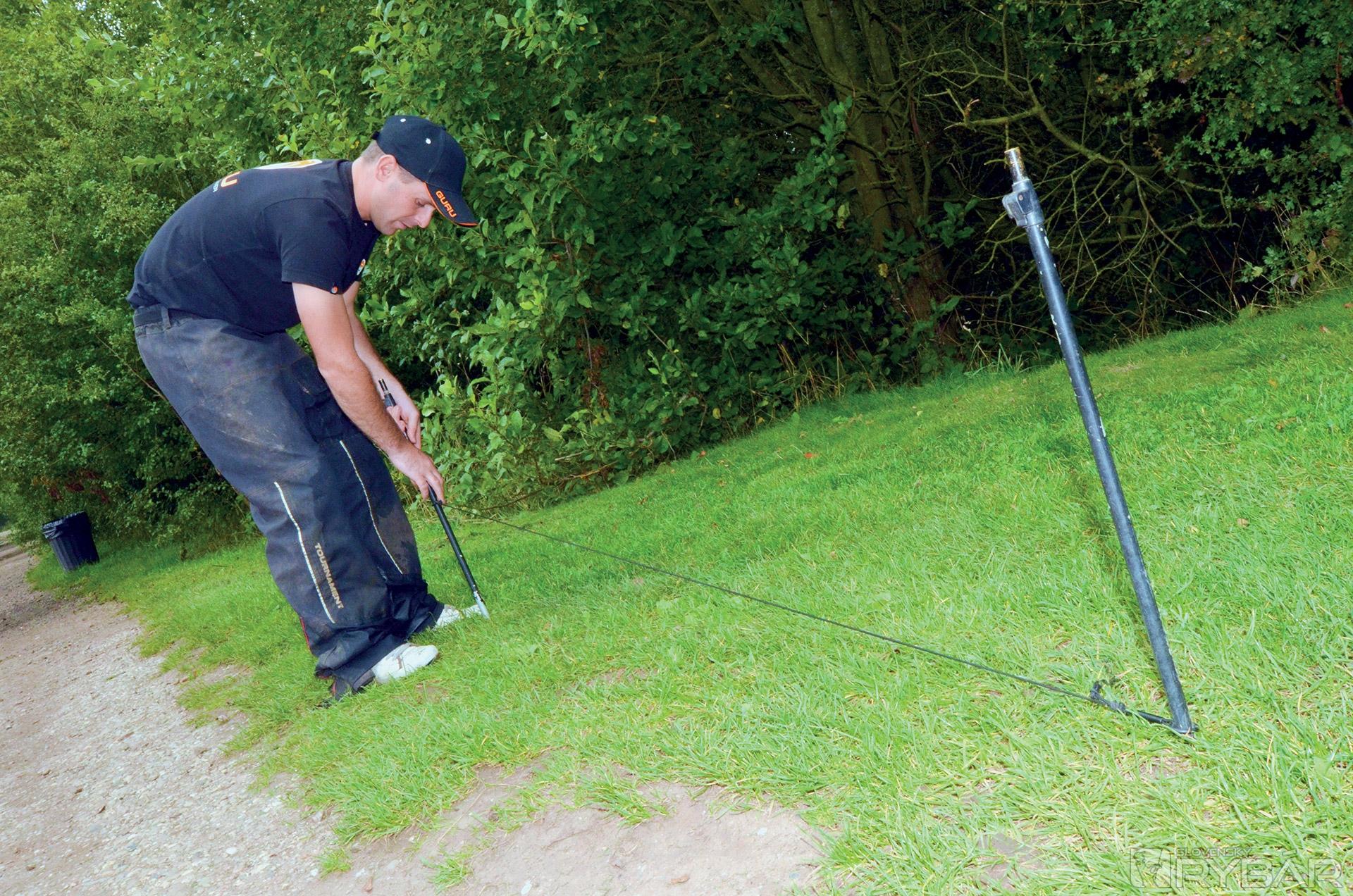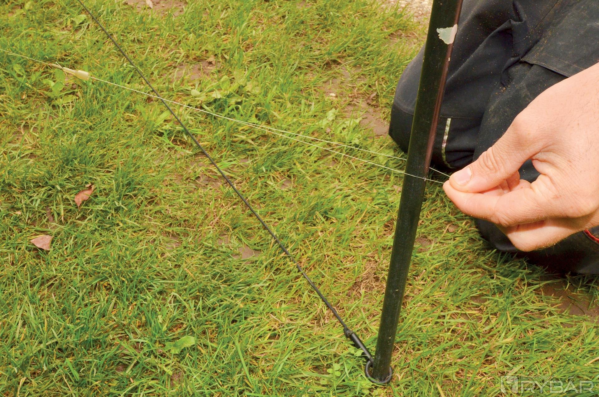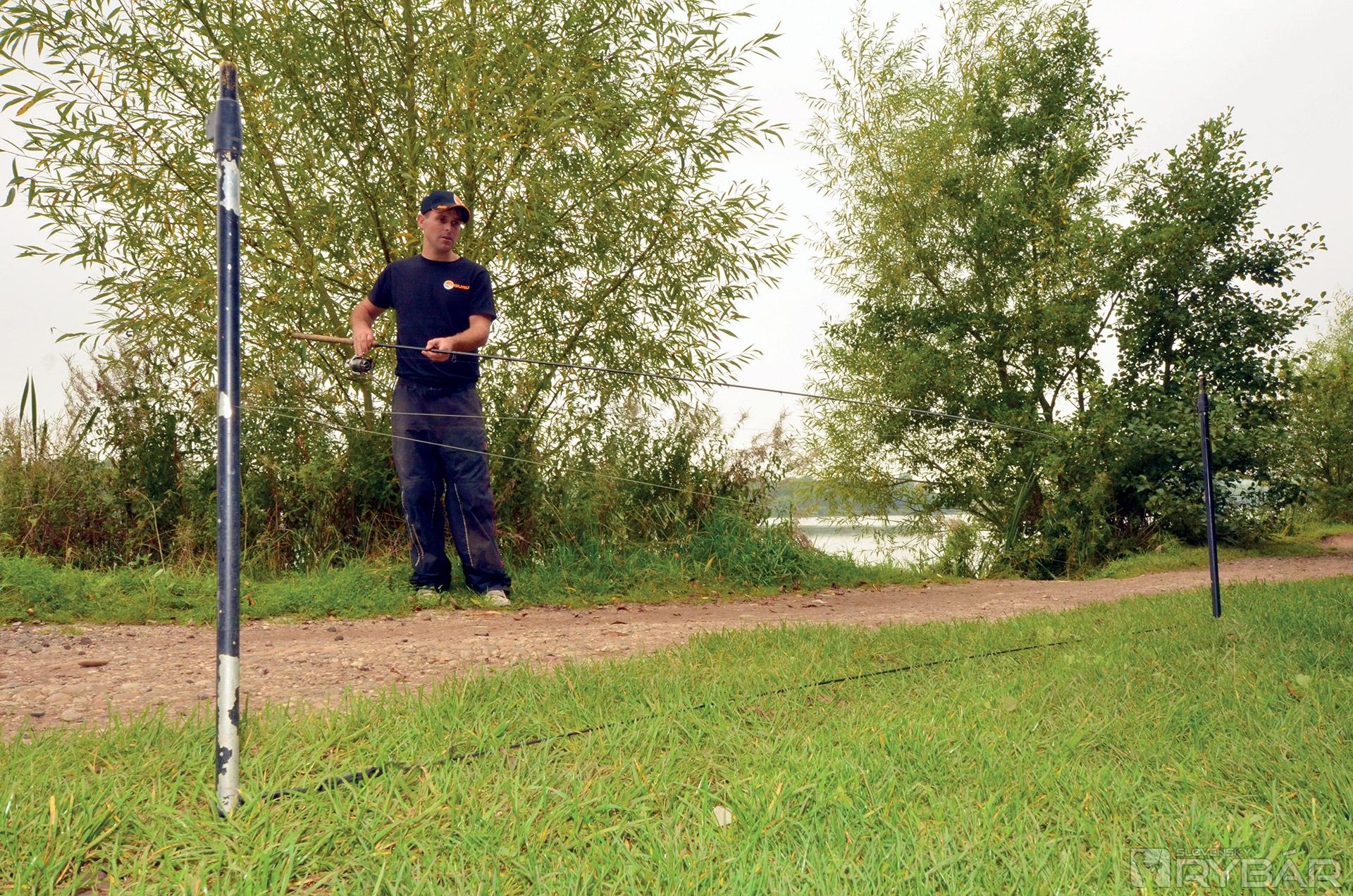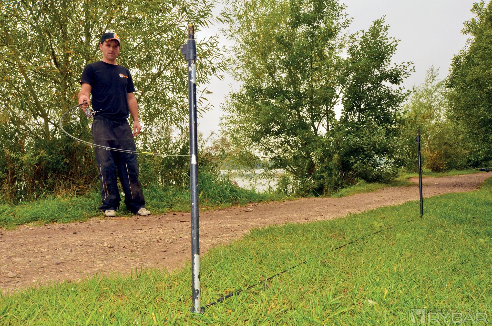 Používam aj ďalší prút, na ktorom mám marker. Nameriam si vzdialenosť a zaklipujem vlasec. Potom palicu vytiahnem a na brehu si postavím dištančné kolíky (distance sticks). Tie sú od seba vzadialené v určitej vzdialenosti, napr. 2 m. Okolo kolíkov obtáčam vlasec na marker prúte až sa dostanem k zaklipovanému vlascu. Viem, koľko som urobil otočiek a takto si potom nameriam vzdialenosť aj na prúte, s ktorým chcem chytať.