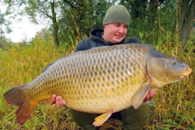 Fúkal silný studený vietor a lialo ako z krhly. Asi o hodinu sa ozvalo nesmelé pípnutie na ľavý prút a swinger sa jemne pridvihol. Urobil som dva kroky k prútu, swinger sa ľahko zatriasol a ja som vzal prút do ruky. Ten sa mi hneď pod hmotnosťou ryby ohol a kapor sa pomaly váľal v chladnej vode, úplne na dne. Po veľmi peknom boji som kapra podobral a s Martinom sme ho vyniesli na breh. Mal som z neho obrovskú radosť. Bol to totiž môj prvý kapor cez 15 kg s hmotnosťou 17,1 kg. Zabral na malú guľôčku 3XL s orezanou popkou, všetko riadne nadipované dipom 3XL na nadväzci s voskovanou šnúrkou s háčikom Longshank Nailer č. 6 na blowback.