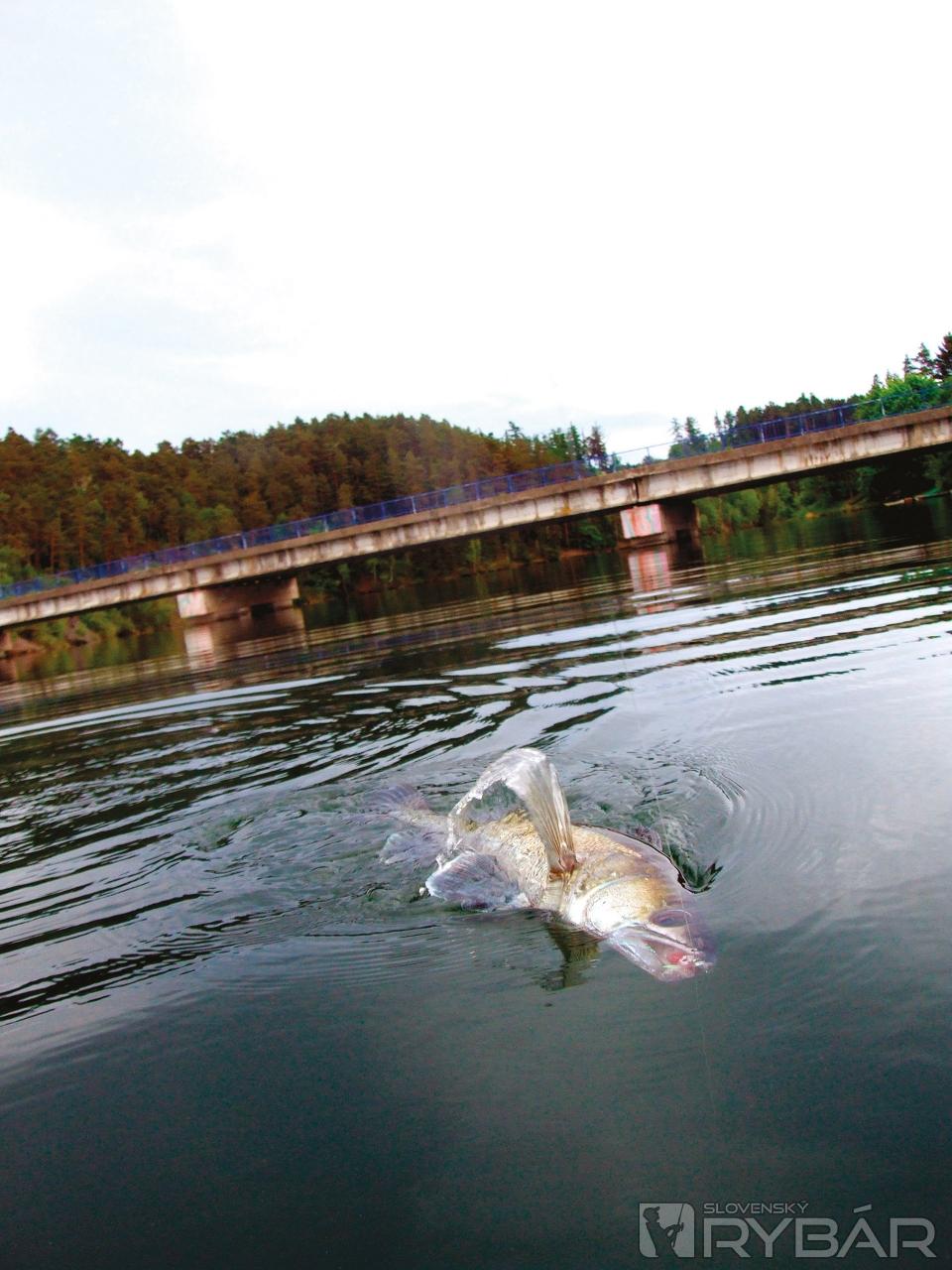 Po dopade šnúry na hladinu som sa so sťahovaním nijako neponáhľal a nechával svoju číru intermediálku s 2 m dlhým nadväzcom z fluorokarbónu klesnúť niekde až do 2/3 vodného stĺpca. Potom som šnúru rukou pridržal a nechal rýchlejšie klesať len strímer. Po celkovom dopnutí nadväzca, v predtuche blízkosti dna, som pomaly, tiahlo a s miernymi ťuknutiami zatiahol ľavačkou za šnúru. V smere od navijaka ju posunul až za chrbát, čo mi ruka dovolila. Strímer tak opísal pod vodou rýchly vzostup od dna, pozvoľný skok a ja som ho neskôr znovu nechal na napnutej šnúre voľne klesať ku dnu. A tento postup som s nástrahou periodicky opakoval až úplne pod loď. Bum. Je tam.
