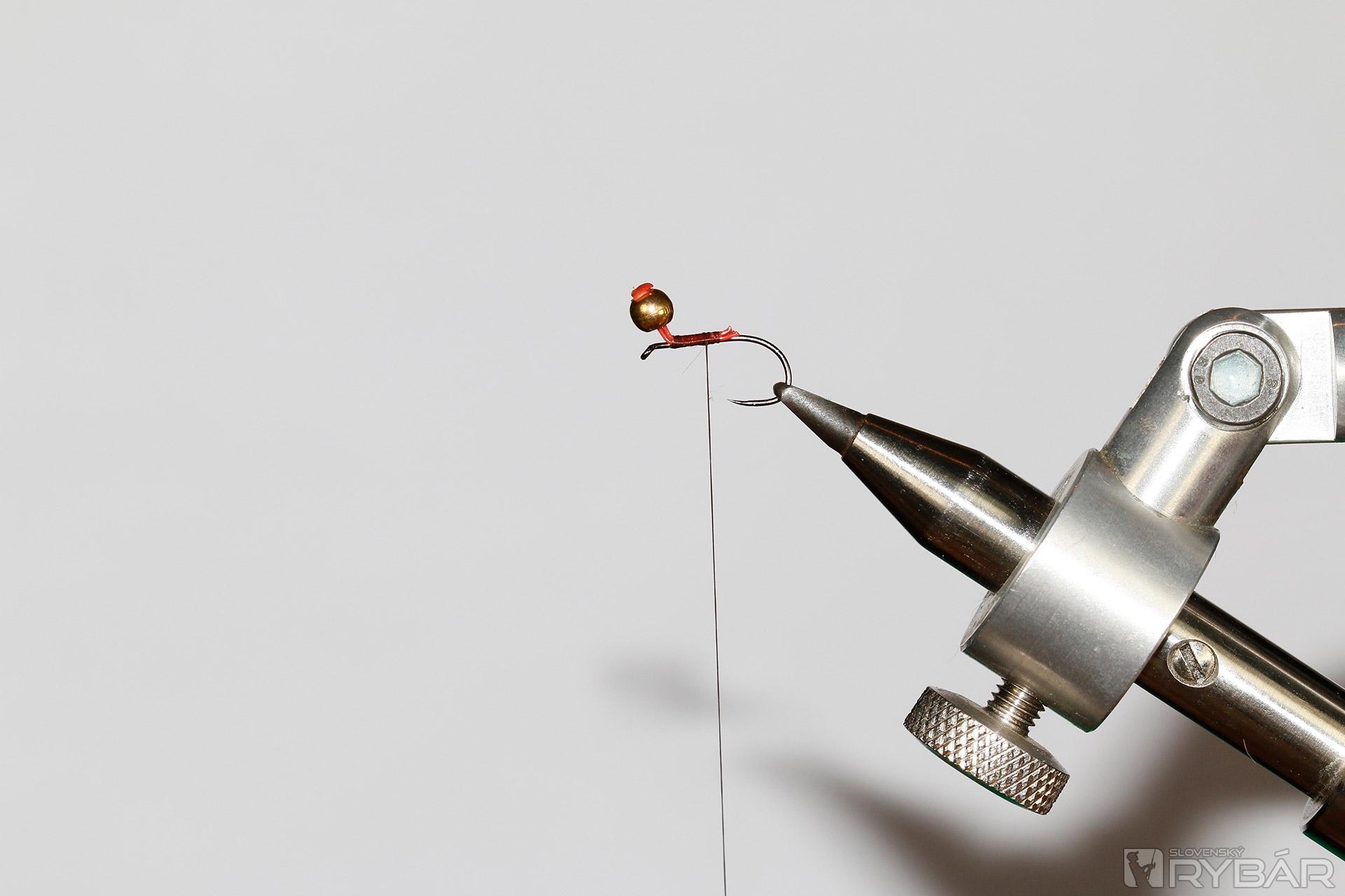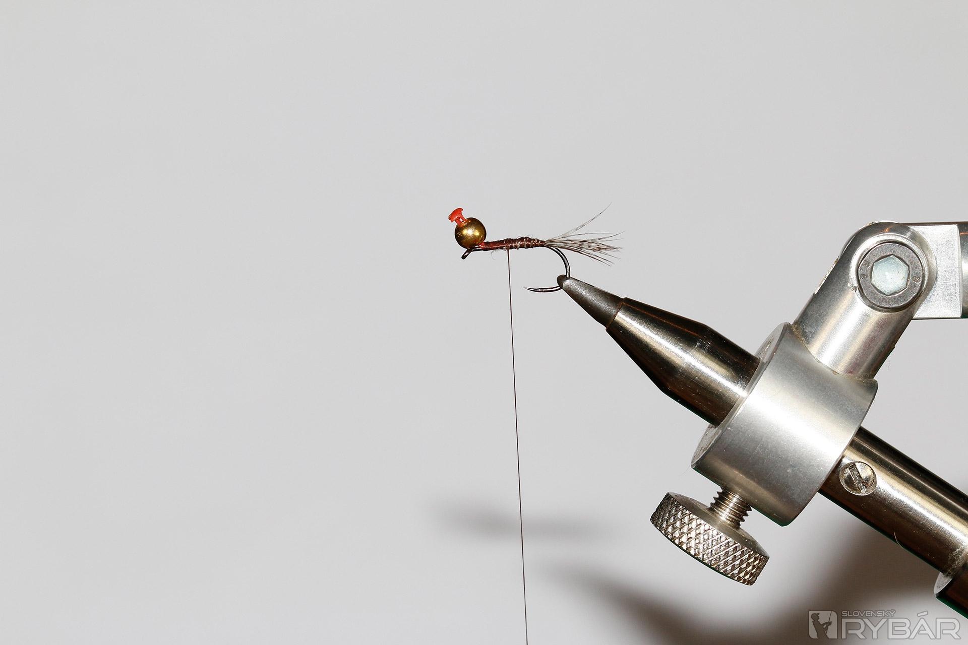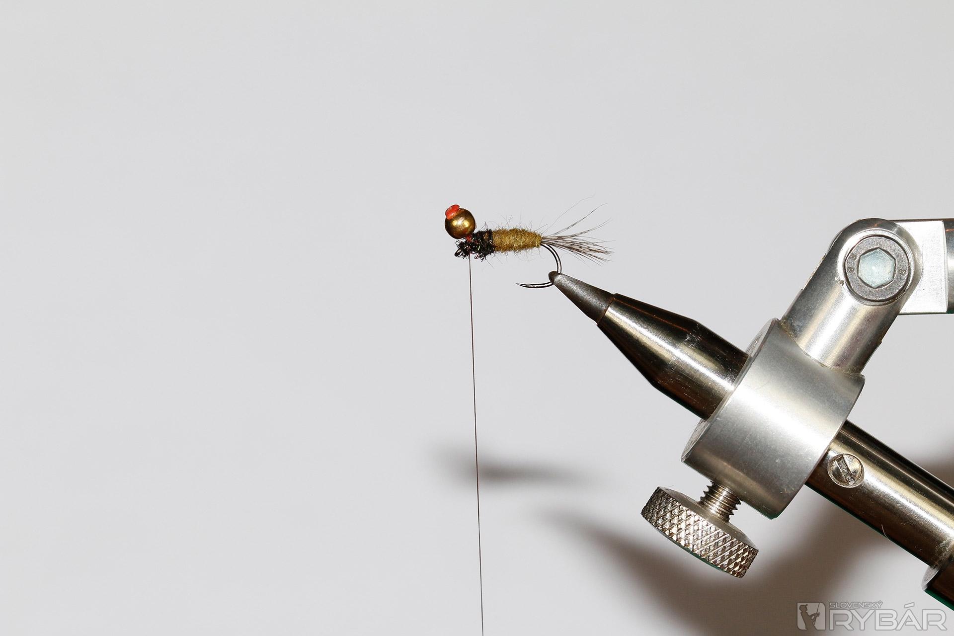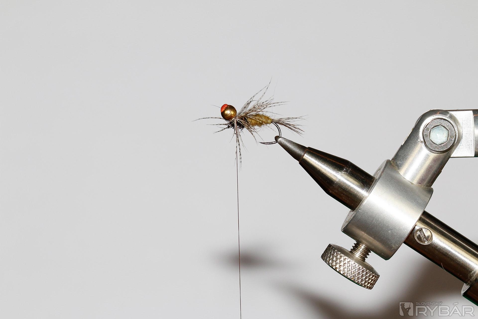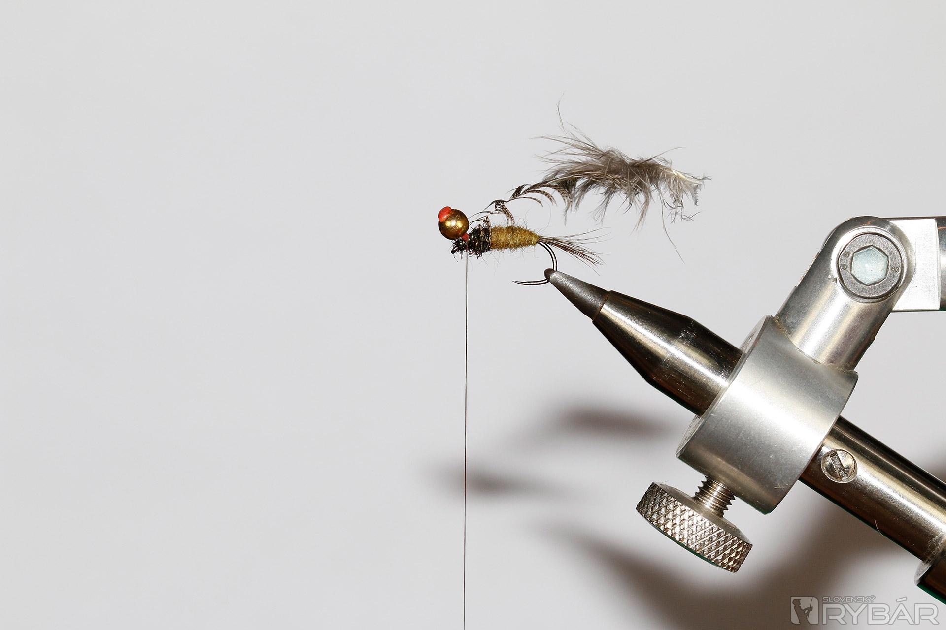Zaujímavý vzor nymfy, ktorý má závažie orientované trochu inak ako sme zvyknutí. Týmto spôsobom môžeme viazať aj mnohé iné nymfy, volfrámová guľôčka a spôsob jej viazania spôsobuje, že muška sa vždy otáča háčikom hore a nehrozí tak uviaznutie mušky. Taktiež viazanie nožičiek z pera jarabice je zaujímavé, viažeme ho parašutovým spôsobom okolo osi plastovej časti, na ktorej je upevnená guľôčka. Lovíme s jednou, alebo dvoma muškami na nadväzci, pričom tento vzor by mal byť vždy ako koncový.