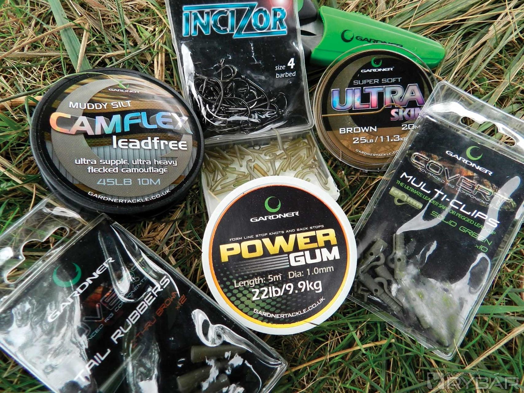 Montáže pozostávali z háčika Incizor 4 naviazaného na Ultra Skin Brown 25 lb a doladený bol rovnátkom Hook Aligner. Špecifikom montáže bola olovenka CamFlex Leadfree vylepšená o gumu Power Gum s nosnosťou 22 lb.