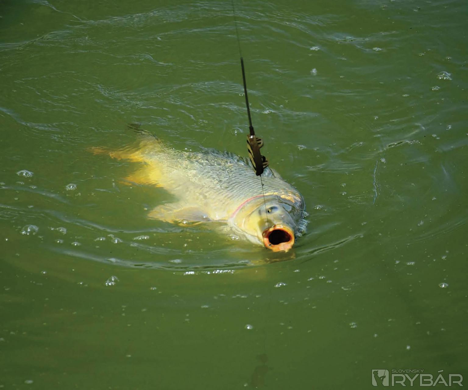 Romankov prút bol bokom a jeho koncová montáž nahodená na 50 metrov ostala bez povšimnutia – tam sa ryba ani neukázala, nástraha bola nedotknutá. Moje nástrahy, ktoré som nahadzoval takmer na stred jazera boli maximálne za 5 či 6 minút nájdené rybami a tak sme chytali iba s mojimi 420 centimetrovými feeder prútmi. V skutočnosti som ja len pripravoval nástrahy, plnil som košík peletkami Ready Method a nahadzoval a Romanko skoro vždy zasekával a zdolával rybu za rybou. Ja som ryby podoberal a zdolával iba vtedy, ak bol záber na obidvoch prútoch alebo ak prišiel záber vtedy, keď Romanko zdolával.