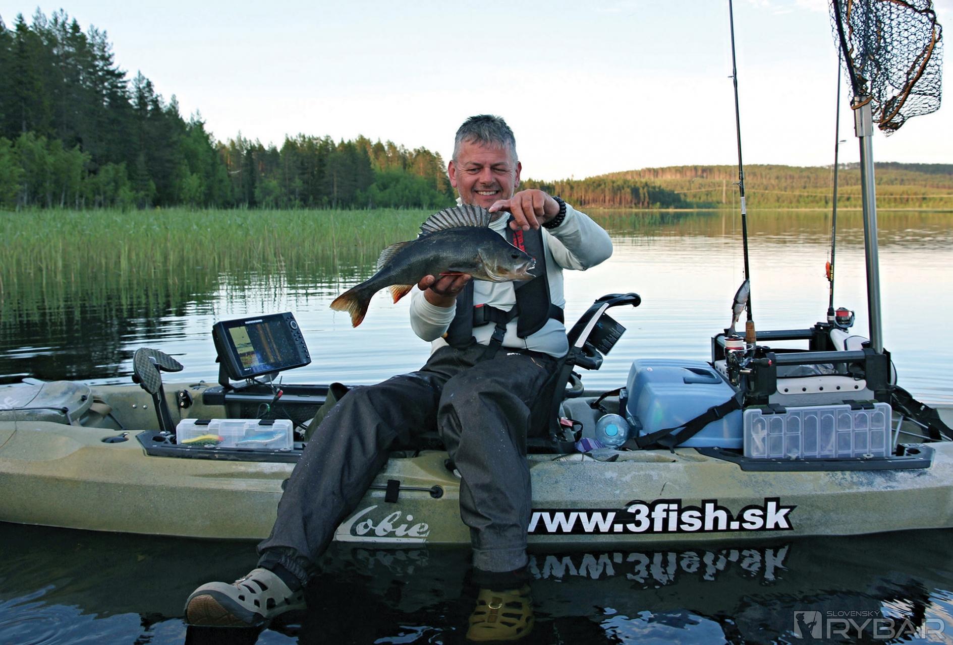 Feri so svojím rybárskym kajakom Hobie. Ako vidíte, má v ňom všetko. Neverili by ste, ale za celý pobyt sme sa ani raz nestretli na vode. Toľko možností je v tejto oblasti.