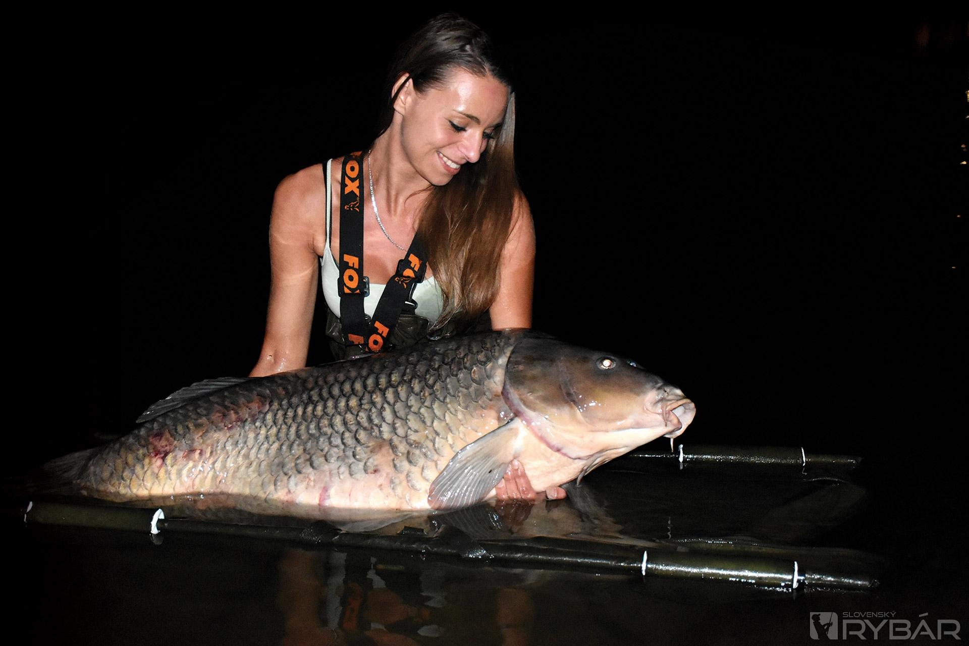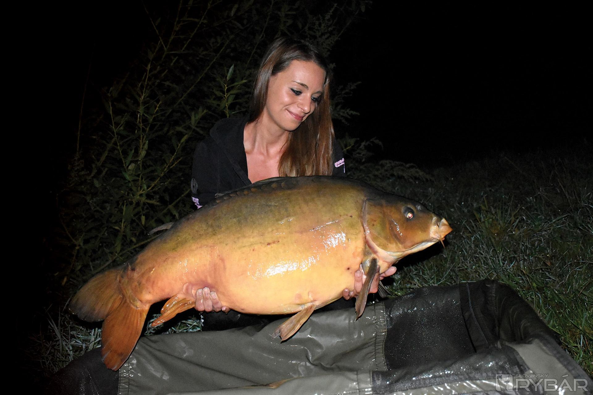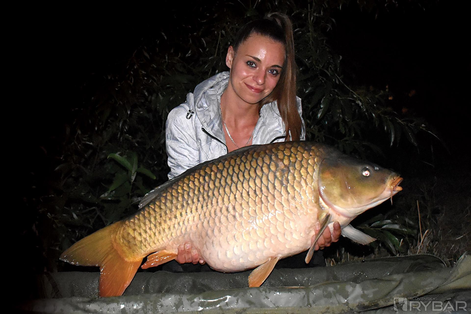 Vyrazili sme na dovolenku na miesto, ktoré veľmi dobre poznáme, len proste o kus inam. Mali sme pred sebou 12 dní lovu a za mnou hlavne tri mesiace bez kapra. Hrozne som si priala rybu a prišiel mi kapor asi tak 1,5 kg. Už som si vravela, že som asi prekliata. Mala som miesto, kde som pri každom nahodení musela vziať čižmy a ísť nahodiť ďalej: jeden prút kvôli stromu a druhý prút tak, aby som dohodila presne na hranu, o ktorej som vedela. Mám rada svetlo, takže pri zotmení nastal čas posledného prehodenia pred vybratím prútov. Bolo niečo málo pred 21. hodinou. Ubehlo 15 minút, nato jazda... Pomalá, taká, akú mi vždy môj priateľ popisoval, že toto robí veľký kapor. Poviem vám, vzala som ten prút a už v tú chvíľu som sa rozklepala. Vedela som, že toto bude veľká ryba. Asi po 15 minútach boja na člne, keď som rybu nedokázala dostať od dna a furt len išla, hovorí priateľ, že to bude sumec ako blázon. Zrazu sa vynorila úplná labská kráľovná. V živote som nič také nevidela! Neskutočný pocit! Klepala som sa úplne celá. Toto je proste najväčší úspech a je to sen hádam každého... Veľmi som si priala veľkú rybu, ale že mi príde kapor 29 kg, tak o tom sa mi naozaj ani nesnívalo.