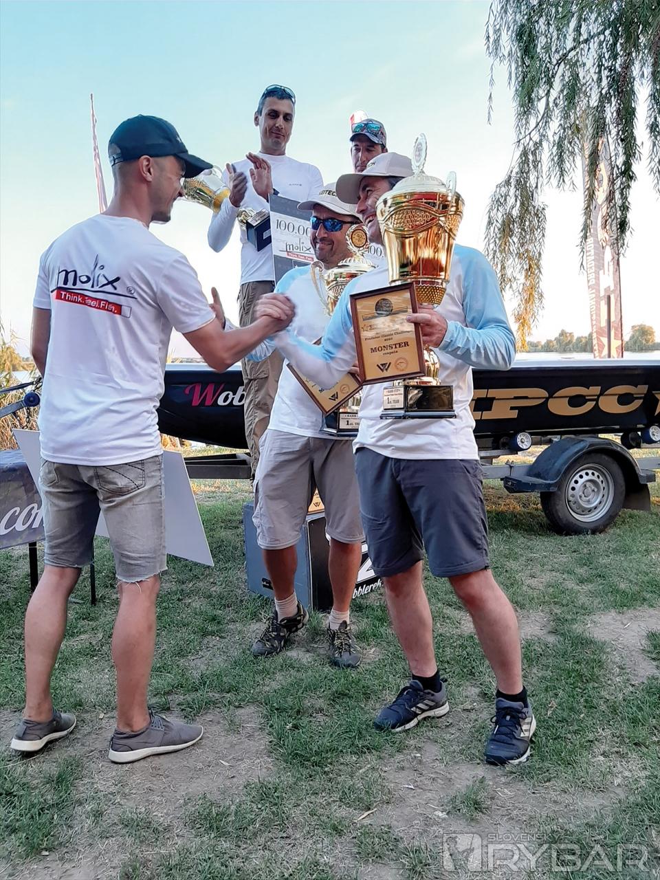 Padla nám sánka a domácim tiež. Ten svätý Peter si s nami riadne zažartoval. Odpálilo mi dekel a viac si už nepamätám. Zaplavil ma kokteil emócií, adrenalínu a šťastia. Preberáme poháre pre víťazov, certifikát, že postupujeme do Bass Monster ligy a hlavnú cenu – laminátový čln. Nasledujú gratulácie a vyzvedanie, na čo a ako sme chytali? Ako je to možné, že sme vyhrali, veď sme mali po prvom kole len jednu rybu...?! Ešte dávame posledné interview a šťastní odchádzame domov.