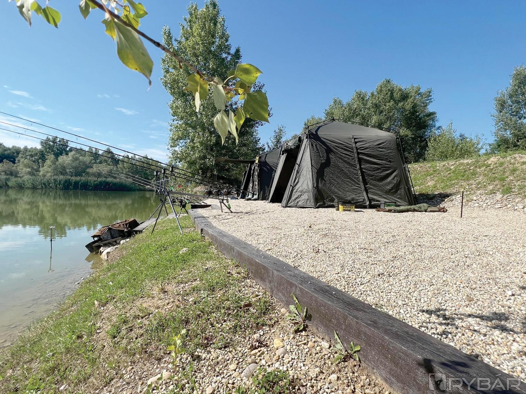 Príchod na jazero sme si naplánovali okolo obeda, čo sa nám obom podarilo dodržať až na pár minút, aj keď sme štartovali v rôznych časoch z opačných kútov. Po príchode sme vyspovedali správcu, prebrali povinnú výbavu a presunuli sme sa k lovnému miestu. Usilovali sme sa, aby sme rozkladanie počas dňa v najväčšom úpeku mali čo najskôr za sebou, čo sa nám sčasti aj podarilo. Na rad prišlo hľadanie konkrétnych miest pred nami pre naše udice. Na to nám poslúžil nahadzovací sonar s predĺženým dosahom a po pár desiatkach minút sme mali už výber zrealizovaný. Dištančnými tyčkami sme si vymerali konkrétne vzdialenosti pre jednotlivé udice a následne označili vzdialenosť farebne aj na našich vlascoch. Dohodli sme rozloženie udíc, vrátane zvolených príchutí a kŕmnej kampane. Po umiestnení udíc na svoje miesta sme vo výbornej spolupráci naspombovali veľmi rýchlo aj prvú dávku kŕmnej várky. Pretože išlo iba o párdňovú výpravu, nemali sme veľa priestoru experimentovať, a tak sme nakombinovali podľa seba nami osvedčené príchute, ktoré sme ponúkli v rôznych formách. Z boilies sme so sebou zobrali mnou preferované príchute Sea, Kráľovská slivka a B17, pričom Zdenko preferoval Scopex + Smotana, B17 a Sea. Boilies sme podporili boostrami a rôznymi popkami, kde nemohli chýbať Ananás + NBA a Monster Crab.