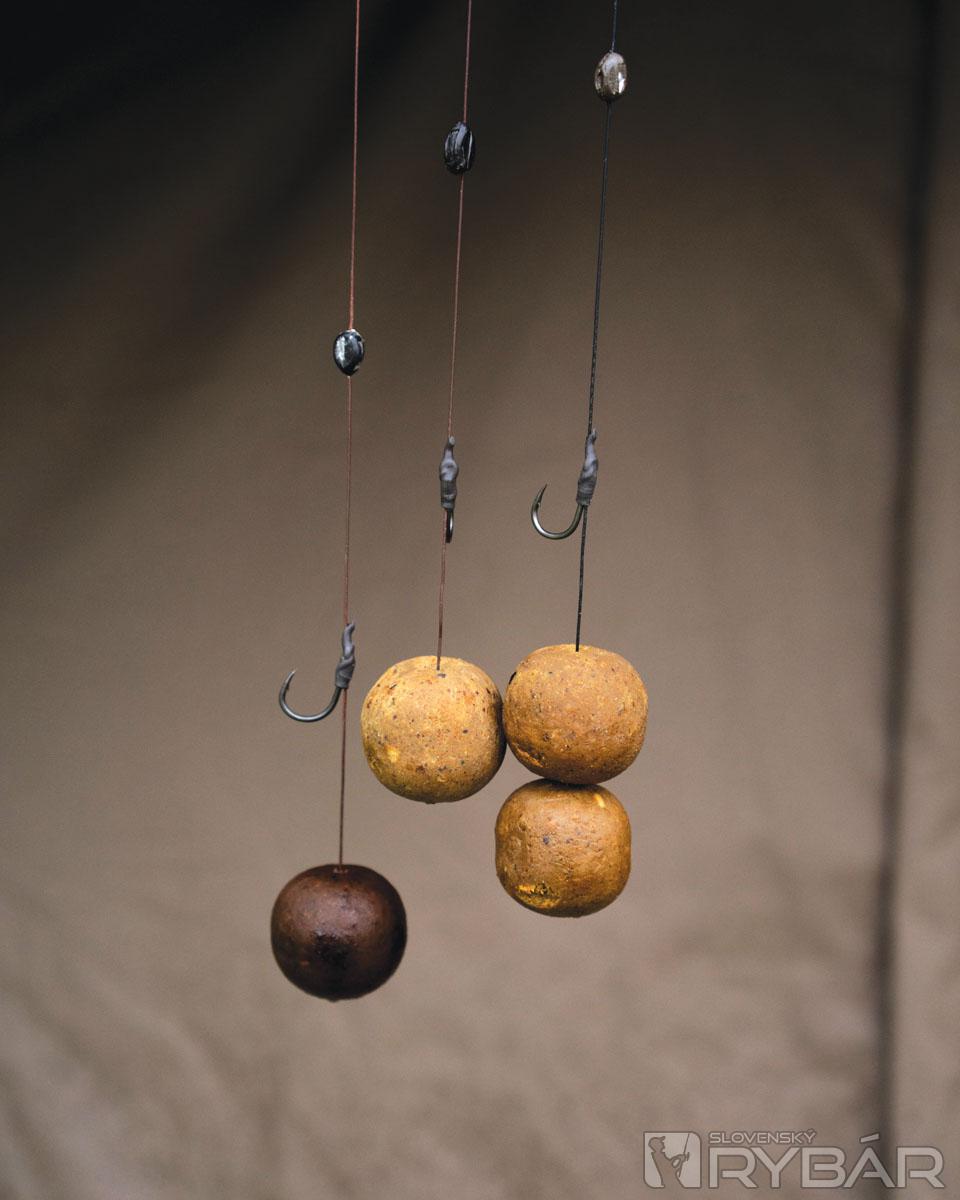 Po 3 – 4 hodinách máme všetko pripravené a vyrážam na vodu osadiť lovné miesta. Vo vzdialenosti 350 – 400 metrov od brehu máme približne 3 metre vody a inak nič zaujímavé. Žiadne nerovnosti, iba menší nános blata na dne, v ktorom sa však nachádzajú mušle a tie sem kapry určite chodia zbierať. Nič nešpekulujem a na vode umiestnim dve tyčové bójky. Jednu dám do vzdialenosti 350 m, ktorá bude najbližšie k výbežku pre lode, keďže ten končí tiež vo vzdialenosti 350 m. Druhú tyčovú bójku umiestnim vo vzdialenosti 400 m a približne 100 m od prvej. Takto som si vytvoril priamku, kde budeme umiestňovať štyri prúty. V strede tejto priamky si spravíme „krmák“, kde budeme viacej kŕmiť. Lovné miesta máme osadené, môžeme pripraviť montáže a vyviezť prúty. Zo začiatku zvolíme každý jednu montáž na „panáčika“ 24 mm boilies MX + 16 mm pop-up Ananás a jednu na sólo boilies 28 mm MX a ja zvolím 2 × 24 mm boilies MX. Ďalej montáže prispôsobíme podľa toho, ako bude ryba reagovať a aká sorta kaprov bude v našej oblasti.