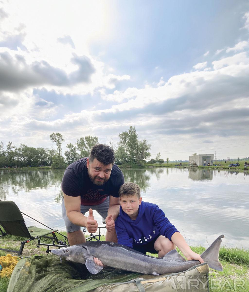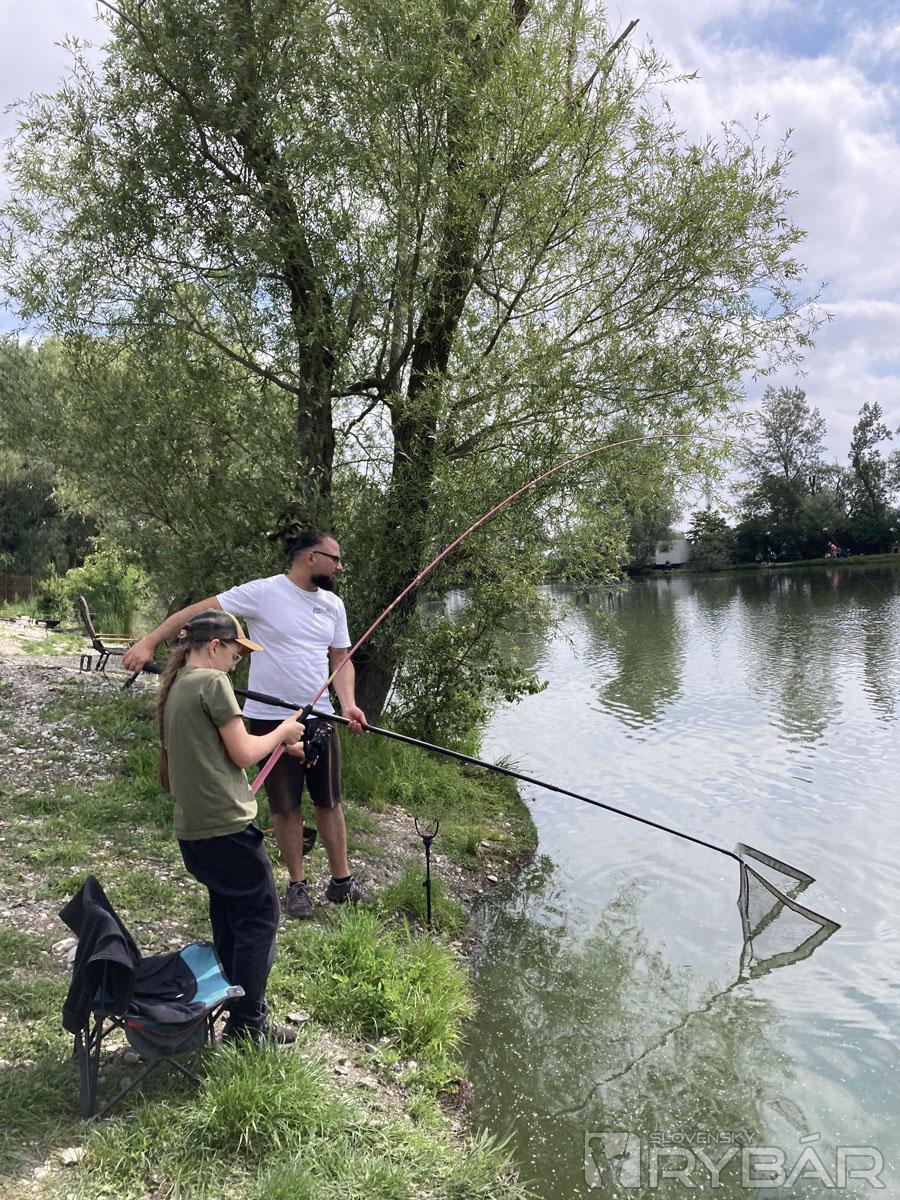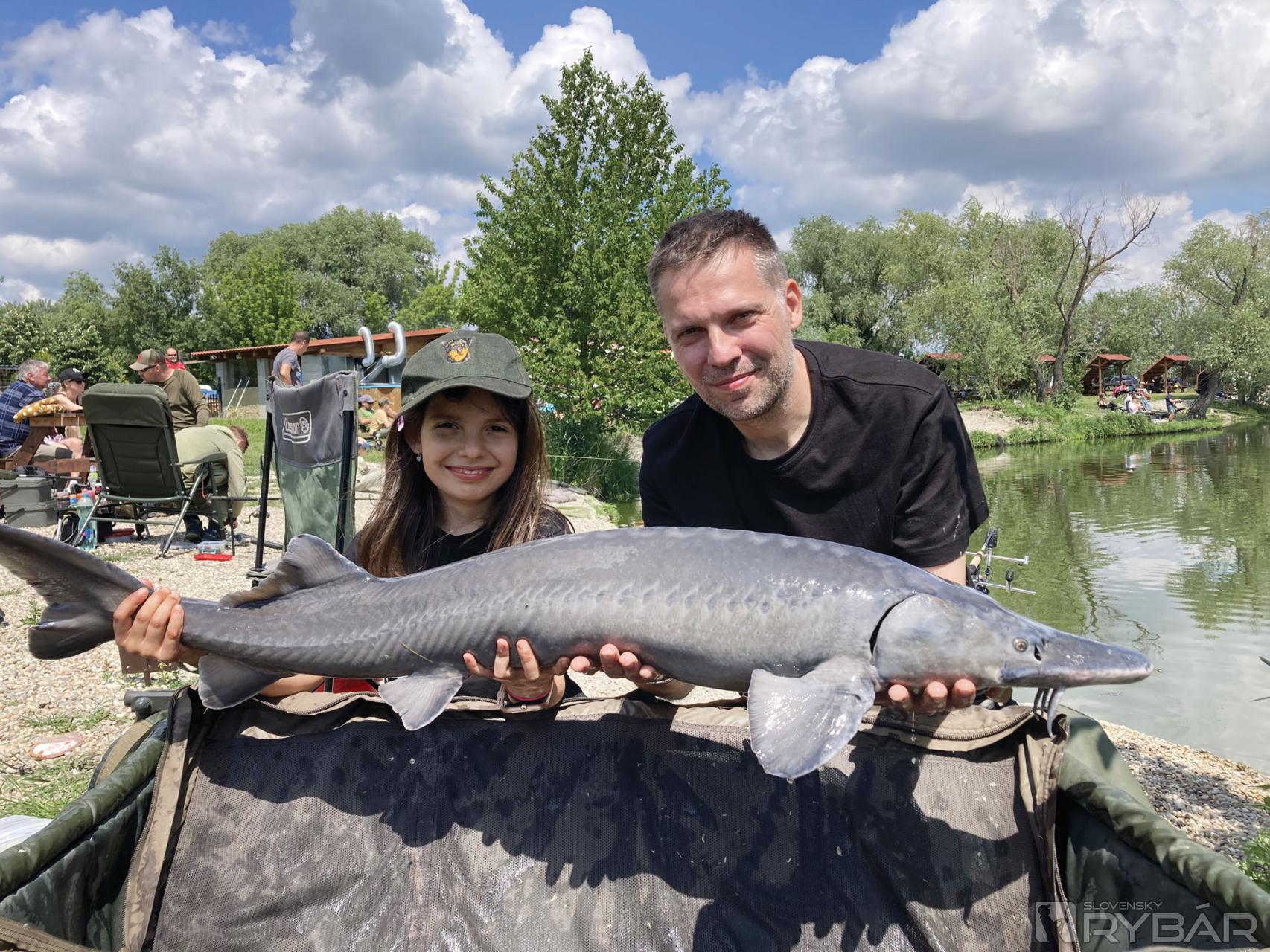 Prvé úlovky kaprov a jeseterov na seba nenechali dlho čakať. Tešilo nás, že sa ryby chytajú po celom jazere, takže medzi sektormi nebol žiadny rozdiel a nikto sa nemohol sťažovať, že by si vylosoval zlé miesto. Okolo obeda sa poradie menilo vyslovene každých pár minút, pretože sa chytali rekordné kusy rýb. Za zmienku stojí kapor s dĺžkou 86 cm alebo 127-centimetrový jeseter, vďaka ktorým si ich lovci odniesli poháre a pamätné diplomy za najväčšie úlovky pretekov. Nedá mi nespomenúť, že jesetera ulovila rybárka a jeho zdolávaním nás 8-ročná Ela dosť pobavila (vekový priemer súťažiacich detí bol 11 rokov!).