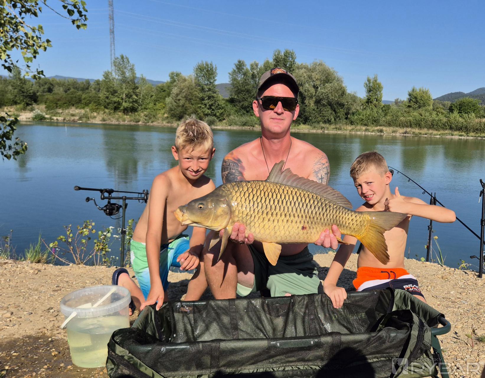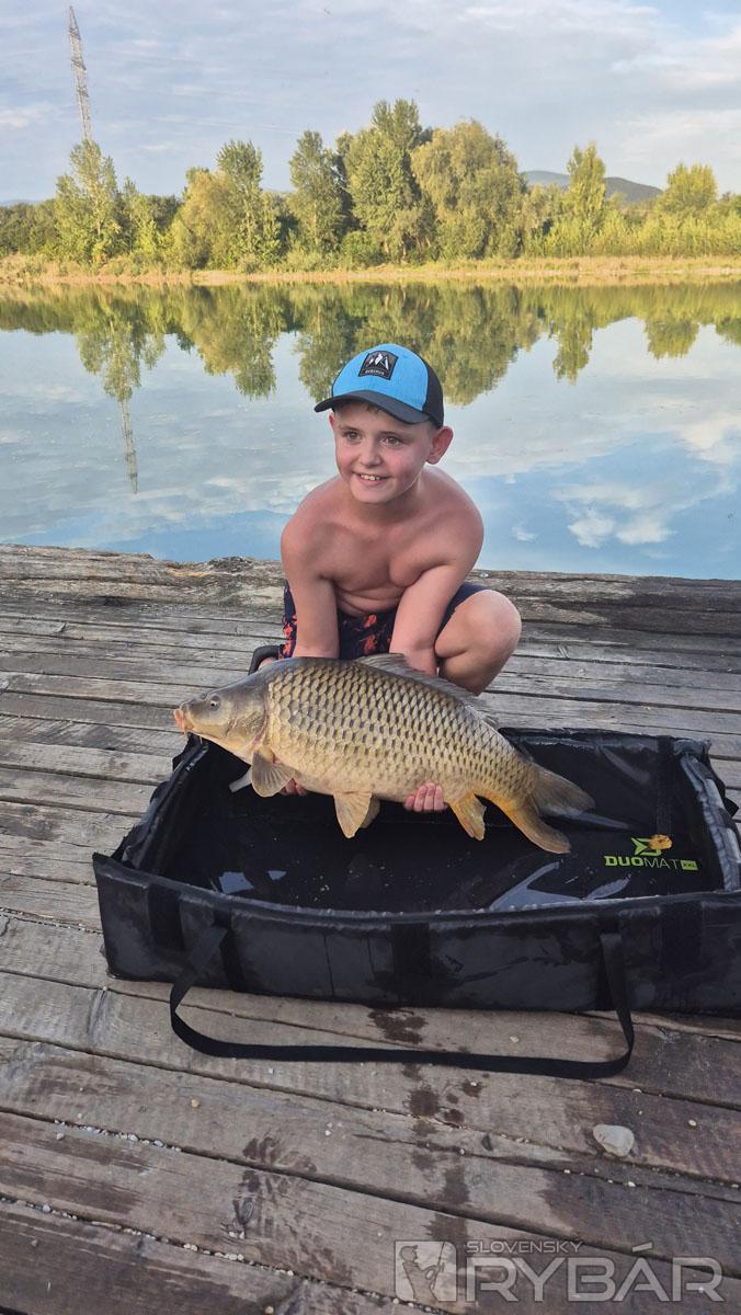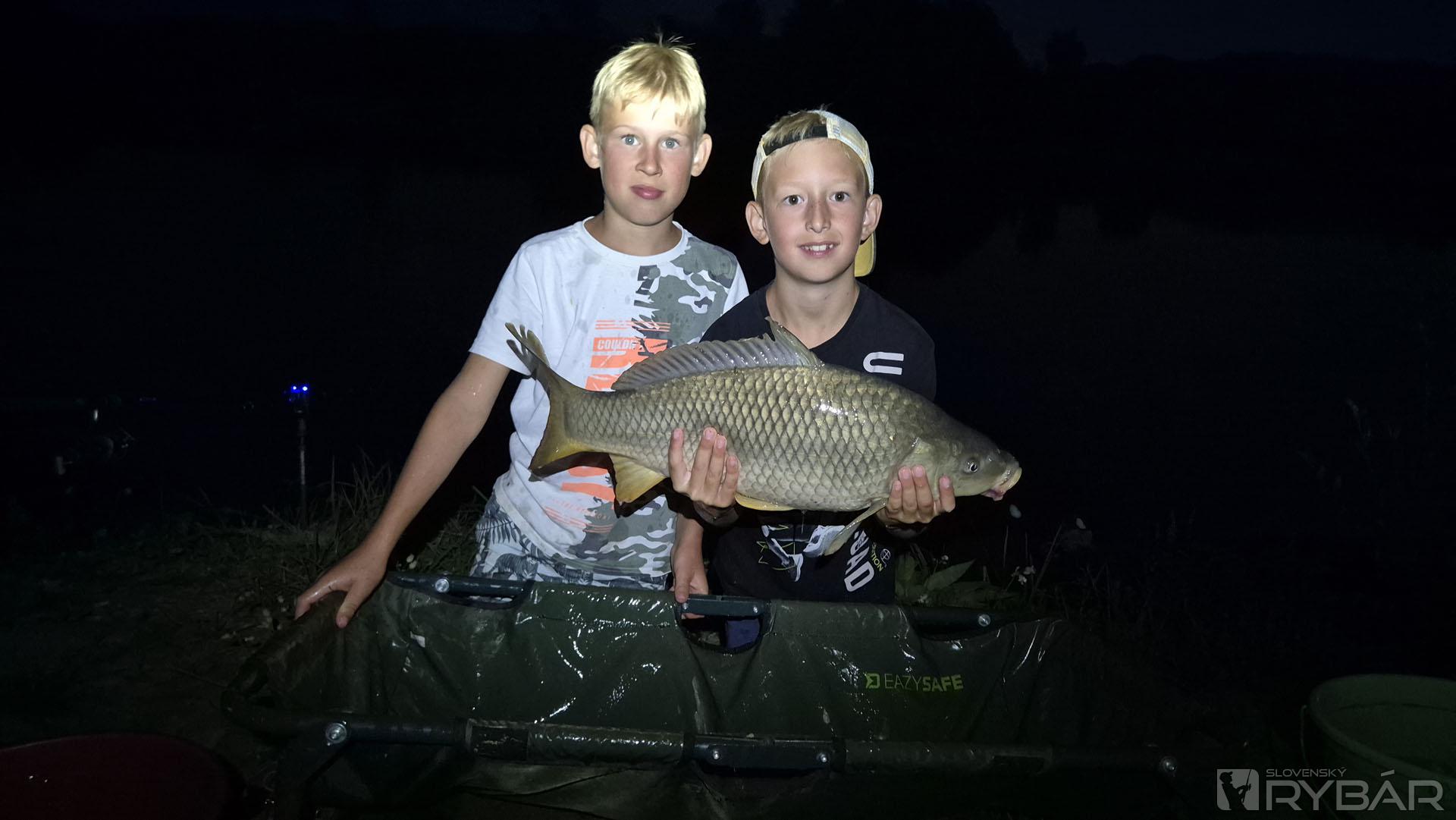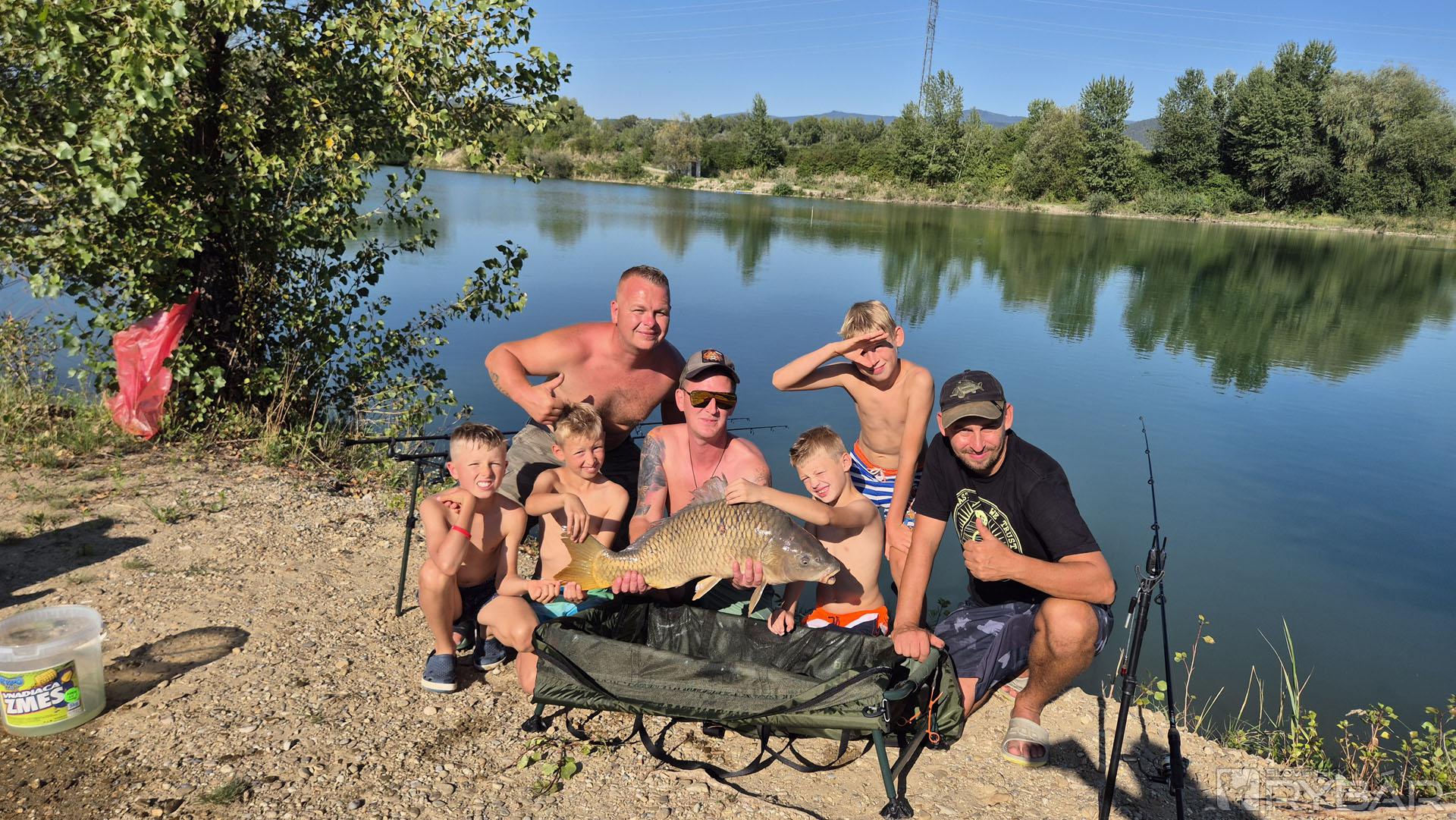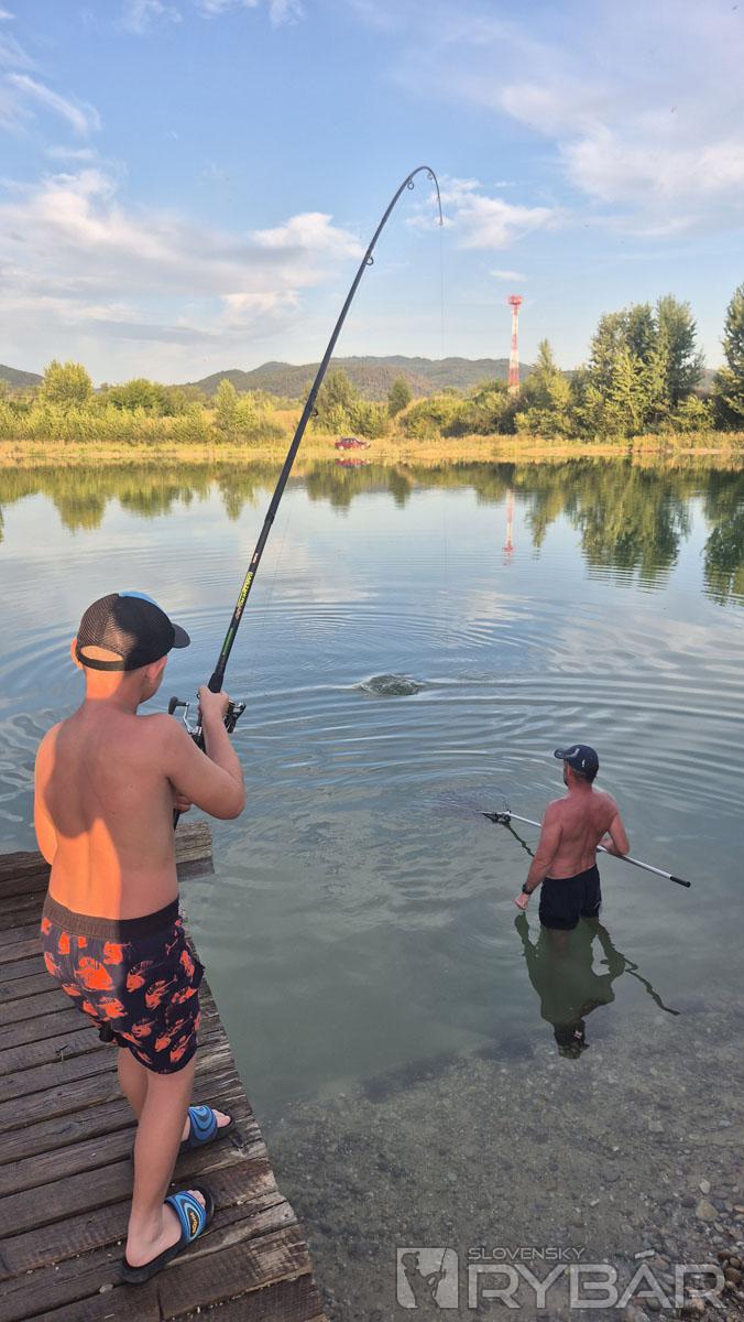 Prvú rybu ulovil najmladší tím! Na Tomáškovu udicu skočil 9,6 kg krivý kapor. Spoznali sme ho už na minulej rybačke, keď ho vytiahol rovnaký rybár. Záberov nebolo veľa, možno sme mali len veľké očakávania. Do večera mal, vďakabohu, každý tím aspoň jednu bodovanú rybu. Na sobotu hlásili veľké horúčavy. Deti sme nakŕmili a poslali spať.