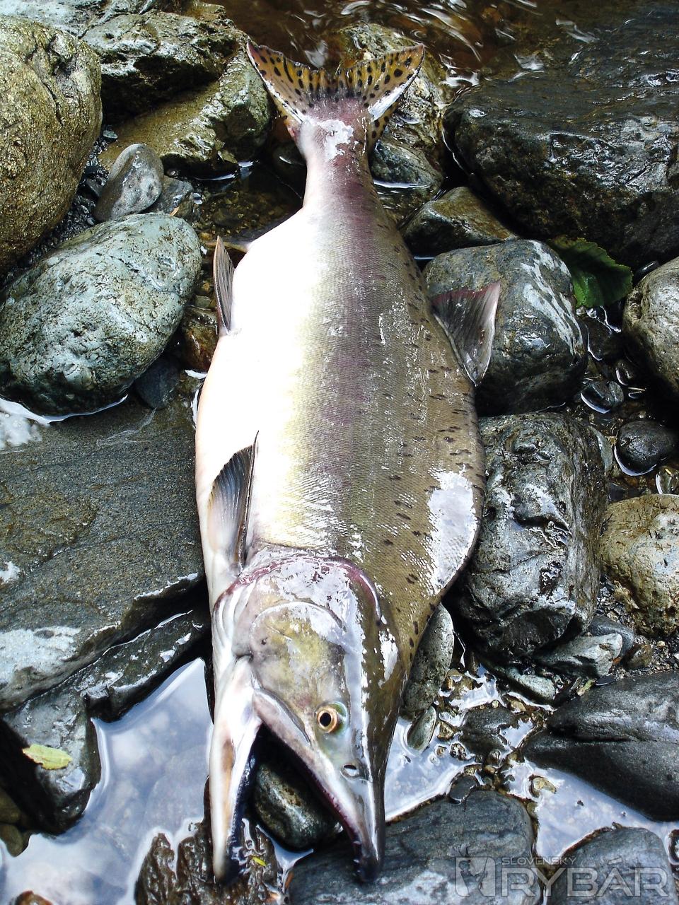 Z príjemného stereotypu rybačky nás preberá brutálny ťah. Samozrejme, prút má v ruke brat (ako inak), snažím sa mu pomôcť aspoň radami a kibicovaním. Vlado sa nenecháva vyviesť z miery a doťahuje cievku „na krv“. Rybu len tipujeme, ale zvyčajný úlovok to určite nebude. Po 10 minútach dlhých, prudkých výpadov sa nám konečne ukazuje na hladine. Losos! Silver, čo megasilver, dobre cez meter! Pri hladine naberá druhý dych, mobilizuje sa a predvádza v celej svojej kráse výskokmi a prudkými výpadmi do strán.