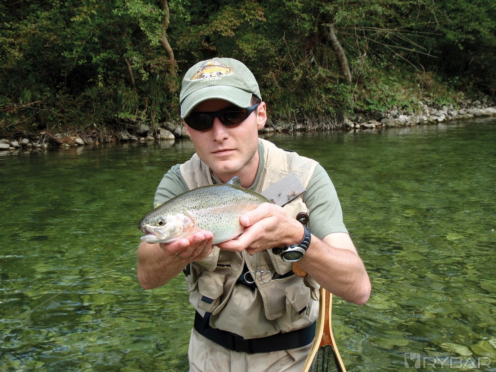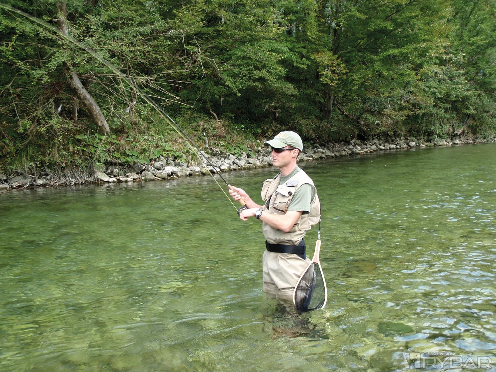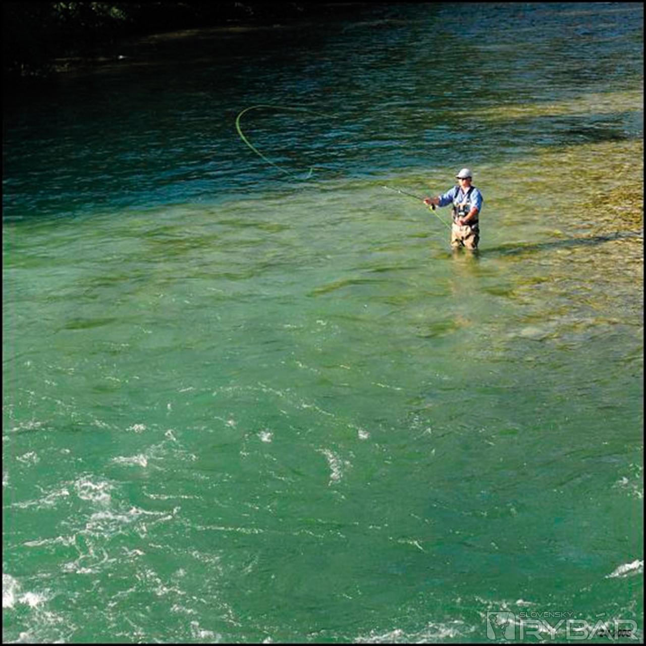 Je tu úžasne. Nech sa postavím kdekoľvek, nech hocikam nahodím, stále tam je „amerikanka“, ako Slovinci milo nazývajú pstruhy dúhové. Záberov o hodinu ubúda. Otec preväzuje na strímer. Túto techniku veľmi nepoužíva, ale o jej účinnosti sa môže na vlastnej koži presvedčiť. Ja ostávam verný svojej tradičnej krivákovej nymfe. Záber ale nie a nie prísť. Možno sme pochytali všetko čo tu plávalo.