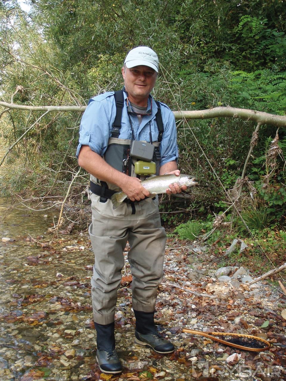 Na druhý deň lovíme opäť na Save Bohinjke. Doobeda to skúšame na obľúbenom mieste v blízkosti cestného mosta. V rieke je zabrodených niekoľko českých muškárov. Darmo, tí vedia, kde je dobre. Brodíme mierne proti prúdu. Výška vody je priam ideálna. V lete to tu bolo úplne iné. Problémom bolo udržať sa vôbec na nohách, nie ešte loviť veľké ryby.