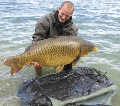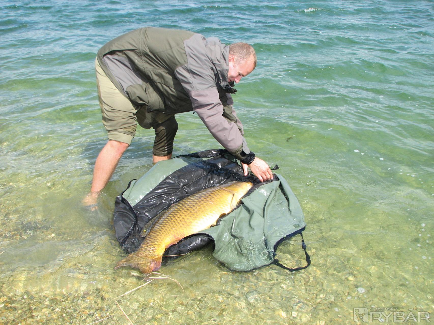 Toto sa nesie celým jazerom. Áno, áno, je tam!!! Monštrum zo slovenskej „zväzovky“. Prichádzam na breh trochu roztrasený, dávam podložku na chrbát. A, sakra, to je slušná hmotnosť! No ešte sále celkom neverím, čo sa vlastne stalo. Kladiem rybu v podložke na zem, beriem meter, čo inokedy nerobím, ale teraz musím! Ten ukazuje 108 cm! Zapínam váhu a dvíham podložku: 26,50 kg.