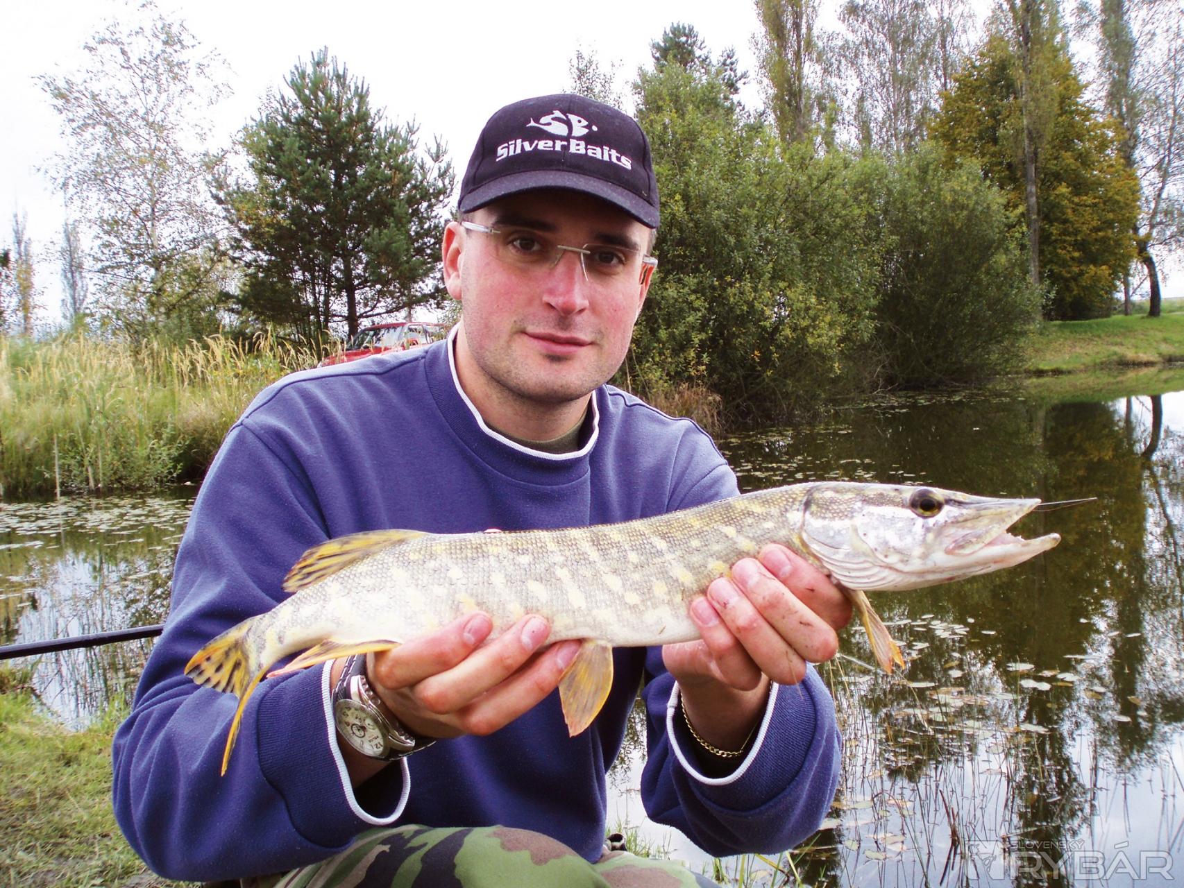 Znovu som rozložil udice, prikŕmil a nahodil. Ale znovu záber neprichádzal a môj test začal byť utrpením ako netrpezlivým čakaním na záber. Možno to bolo aj tým, že na mojom lovnom mieste, ktoré bolo asi 1,5 m2 som si všimol väčšie množstvo útokov šťuky na malé rybky. Okolo 15.45 prišiel konečne krásny plynulý záber na plavák, kde bola montáž maggot klip. Sekol som a hneď som vedel, že je tam niečo väčšie a bojovnejšie. Spočiatku som nevedel čo to je, lebo ryba sa bránila a chcela sa ukryť v blízkych trávach. No po pár minútach sa na hladine objavila šťuka a to ma prekvapilo. Trochu som sa obával, či mi šťuka neprehryzne fluorokarbón svojimi ostrými zubami. Montáž vydržala a po menšom boji už bola šťučka v mojom podberáku.