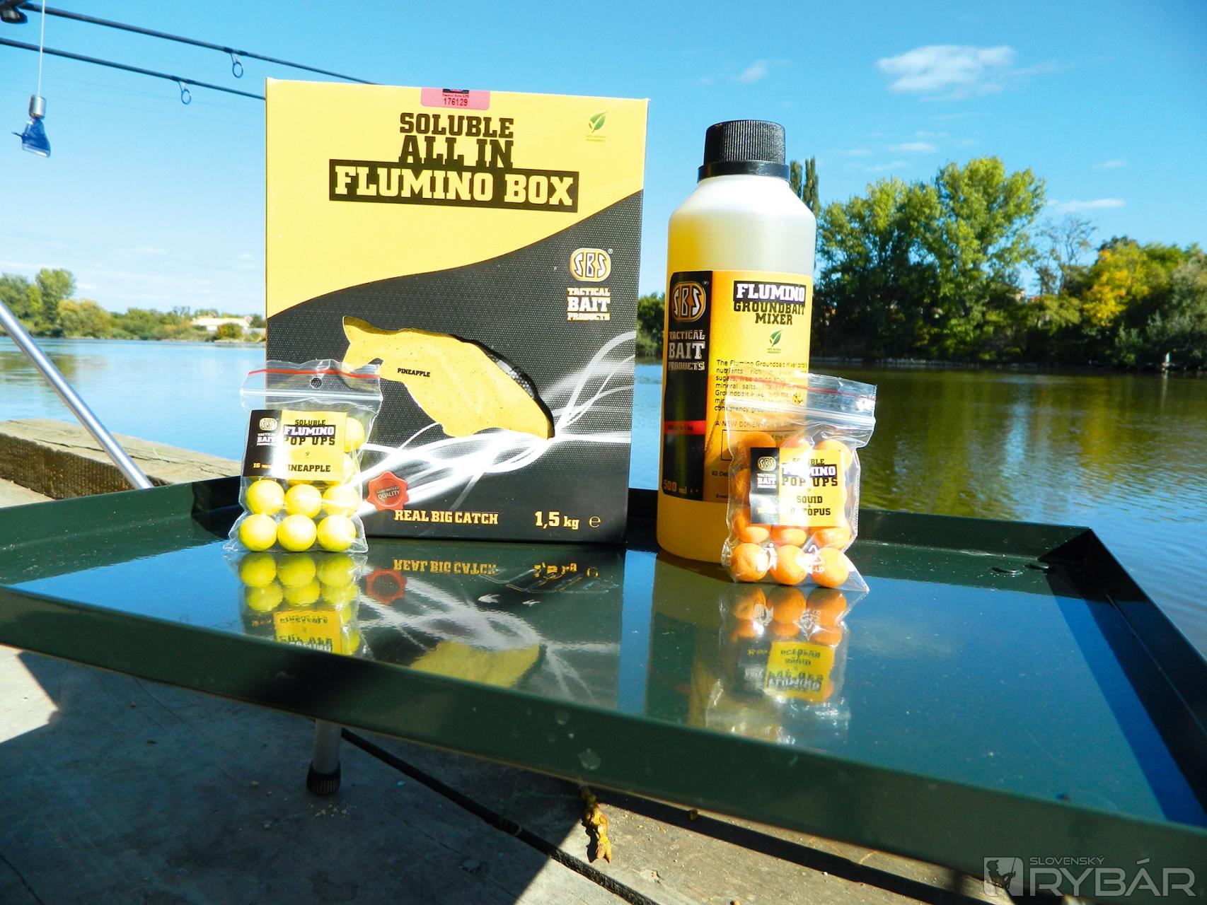 S vedomím, že voda už nebude najteplejšia, sme si zvolili tentoraz Soluble All In Flumino Box s príchuťami Pineapple a Cranberry. A to konkrétne verzie, ktoré obsahujú 16 mm rozpustné boilies s príchuťami Pineapple a Squid&Octopus. Po zmiešaní obsahu balenia, 1 kg suchej zmesi a pol litra tekutiny s príchuťou Pineapple, sme mierne zakŕmili miesto vzdialené asi 20-35 m od nami zvoleného stanovišťa niekoľkými hodmi kŕmidlom.