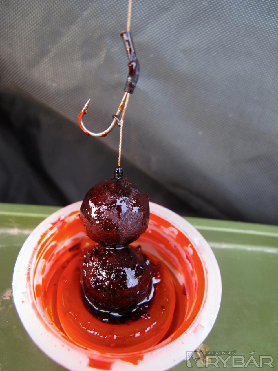 Ďalej som skúšal porovnávať Hook Baits a samotné boilies. Úprimne povedané, nezistil som nejaký výrazný rozdiel, ba skôr pri klasickom boilies som dostal rýchlejšie záber ako pri špeciálnej háčikovej nástrahe. U nej však vidím skôr využitie pri masívnejšom kŕmení, alebo pri dlhodobejšom pôsobení vo vode, napríklad na veľkých vodných nádržiach a pri chytaní veľkých rýb, kde nástrahu necháme dlhodobo vo vode a až tu využijeme jej prednosti predĺženej atraktivity a tvrdosti.