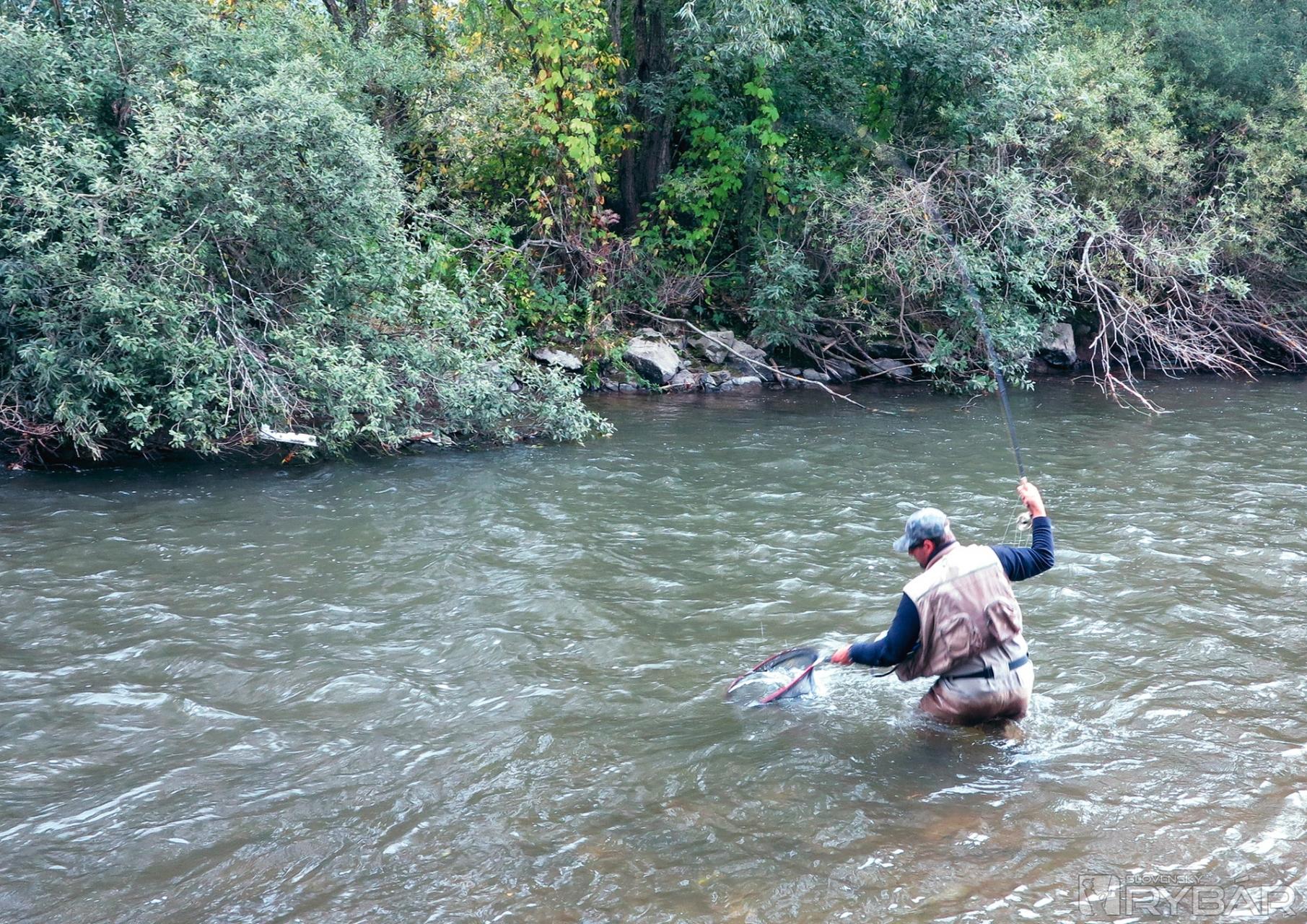 Na tomto nadväzci môžu byť najviac tri umelé mušky, no väčšinou sa požívajú len dve. Ak by som to mal zhrnúť, tak v prvých ranných kolách bola úspešnejšia nymfa zaťažená volfrámovou guľôčkou /zlatou, striebornou/ vo veľkosti č. 14, 16 a len menej pretekárov používalo lov na mokrú mušku či na strímer. Aj keď pomer pstruha potočného bol pri zarybňovaní ďaleko väčší ako lipňa.