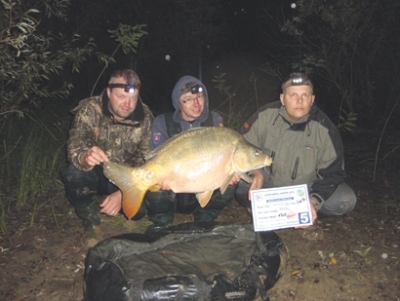 Konečne po zotmení zdolávame 8 kg šupináča na polomäsovú/poloovocnú Squid berry - Oliheň/Lesné ovocie z Enzymatiku. Správne nás to naladilo na noc s 35 kg odskokom. Naša posledná ryba pretekov zaberá ešte tesne pred polnocou. Zdolávame menšieho, ale o to cennejšieho bodovaného kapríka.