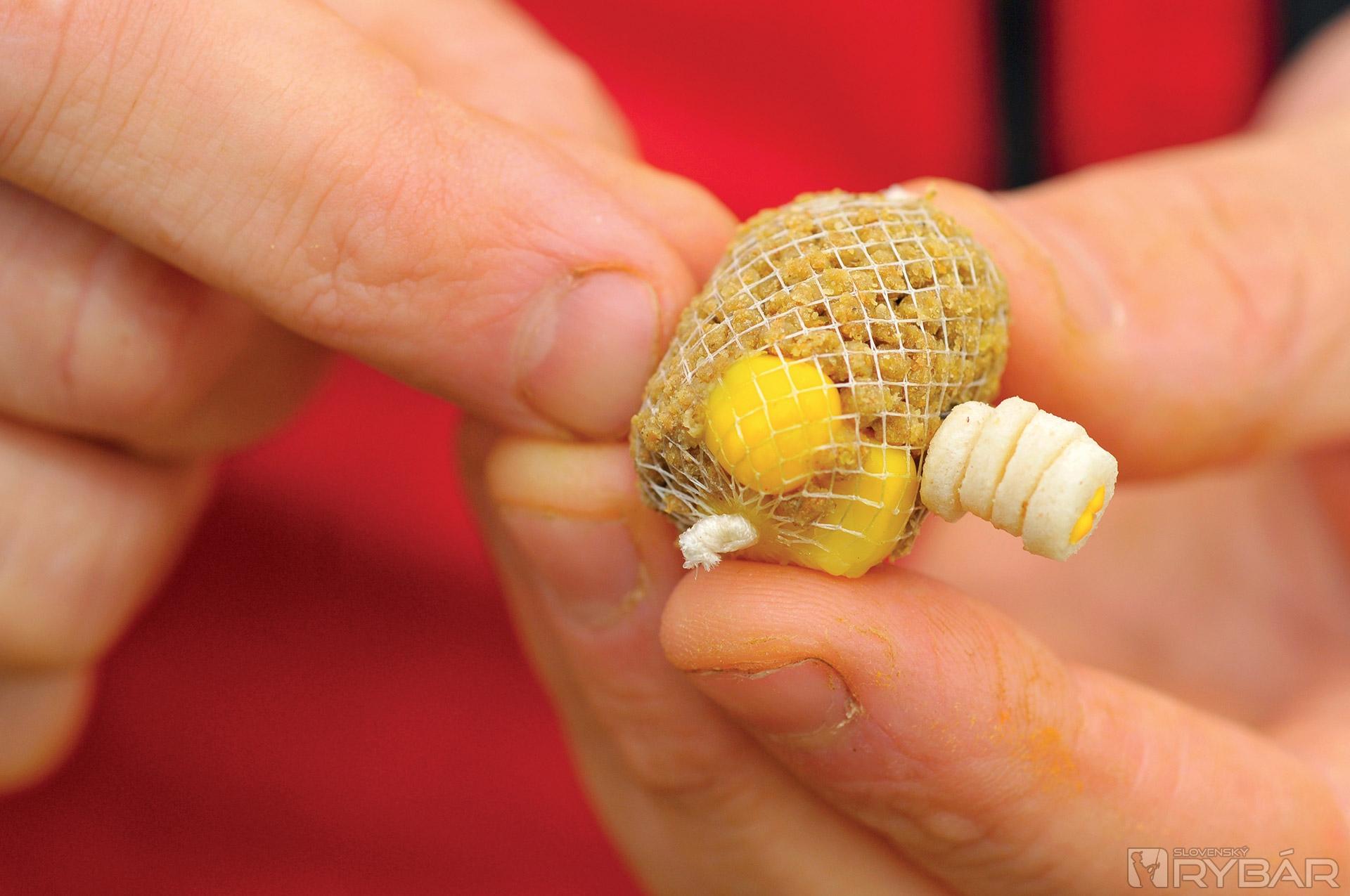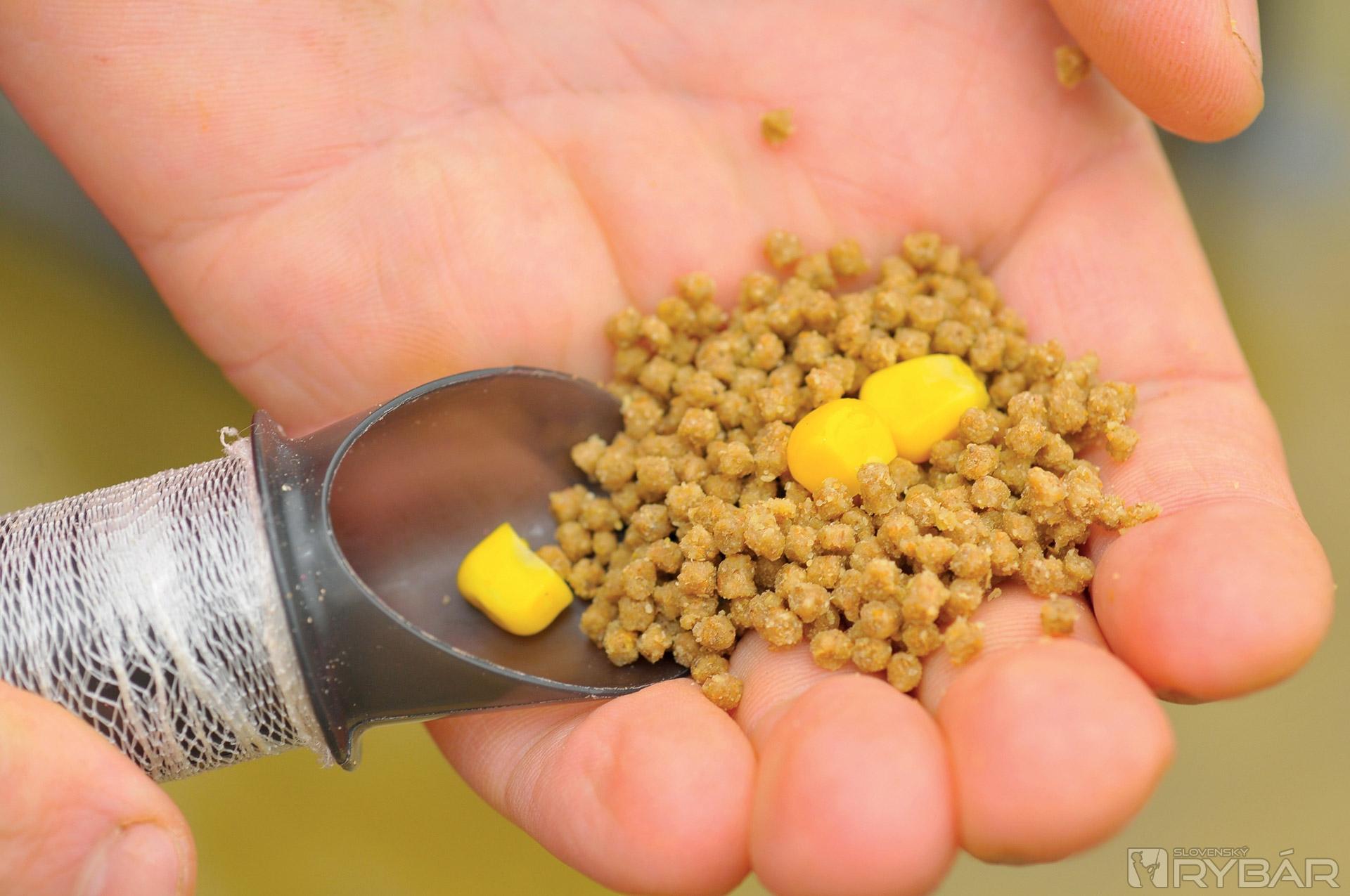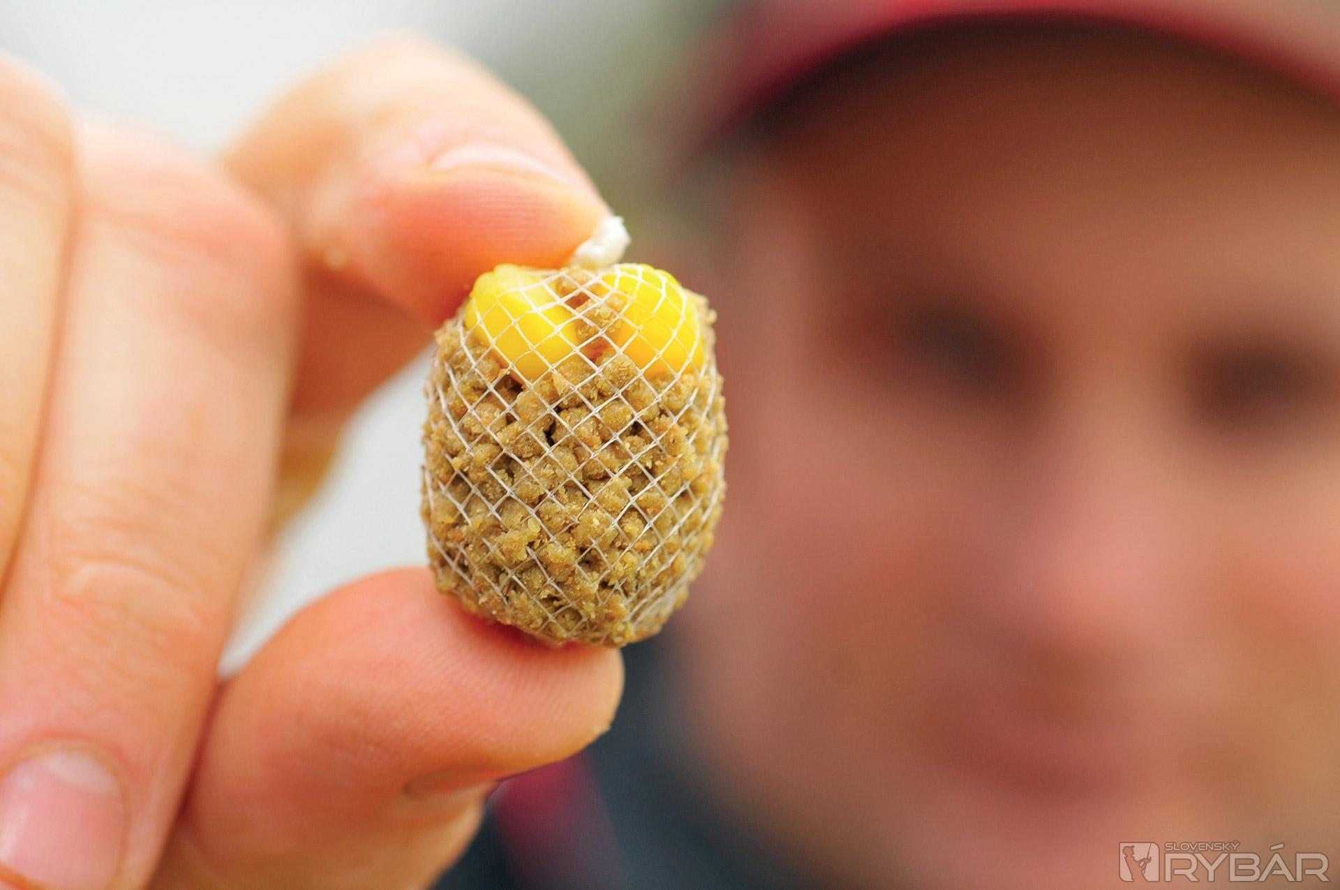 Čo sa týka PVA vrecúšok, v tomto ročnom období je jednoznačne lepšie použiť menšie balíčky. Nechcem vytvoriť kŕmne miesto, ale rybu v prvom rade nalákať a potom uloviť. Výborné sú mikropeletky. V súčasnosti používam vlhčené 2 mm peletky. Nasypem ich do nádobky, zalejem studenou vodou na asi 30 sekúnd. Potom vodu zlejem a nechám pôsobiť asi 30 minút. Peletky ostanú navlhčené a sú ako malé špongie. Niekedy je dobré pridať aj nejaký booster, alebo aktivátor. Moje obľúbené pelety sú Mainline Active-8.