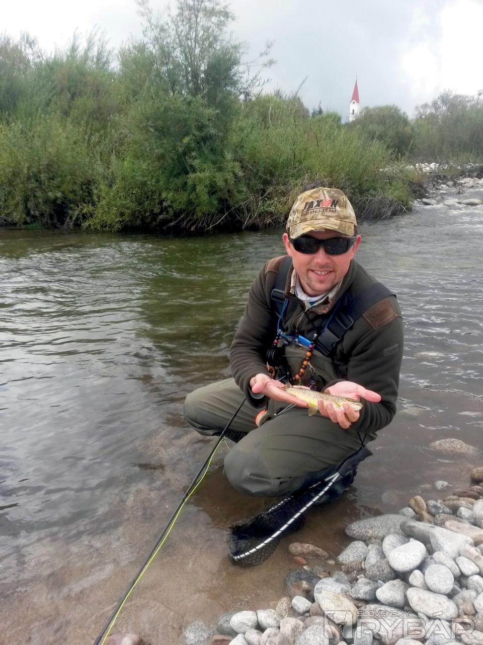 Ráno bolo hádam ešte uplakanejšie ako predošlý deň. Nevadí! Natiahli sme nepremokavé bundy, nejaký ten keksík do vrecka, „placošku“ na zahriatie a šlo sa. Zastavili sme na tom istom mieste ako vo štvrtok a dohodli sa, že jedna skupina pôjde chytať proti prúdu a ďalšia po prúde. Belá má veľmi čistú vodu a naša veľká skupina by mohla ryby rozplašiť až po Podbanské. Okrem toho sa tu nenachádza toľko vhodných miest a toľko veľa rybárov by sa ani nemalo kde postaviť. )