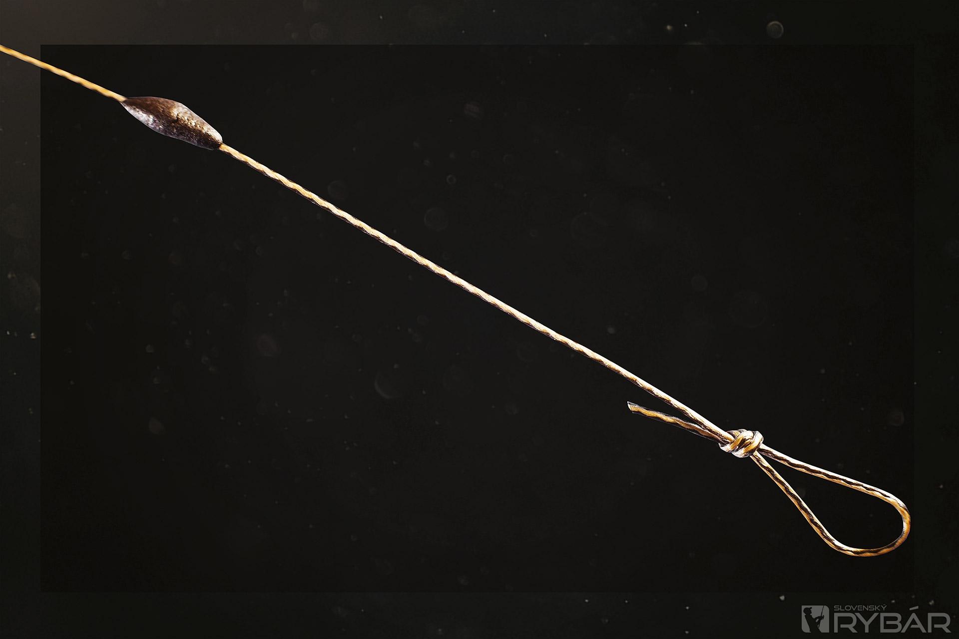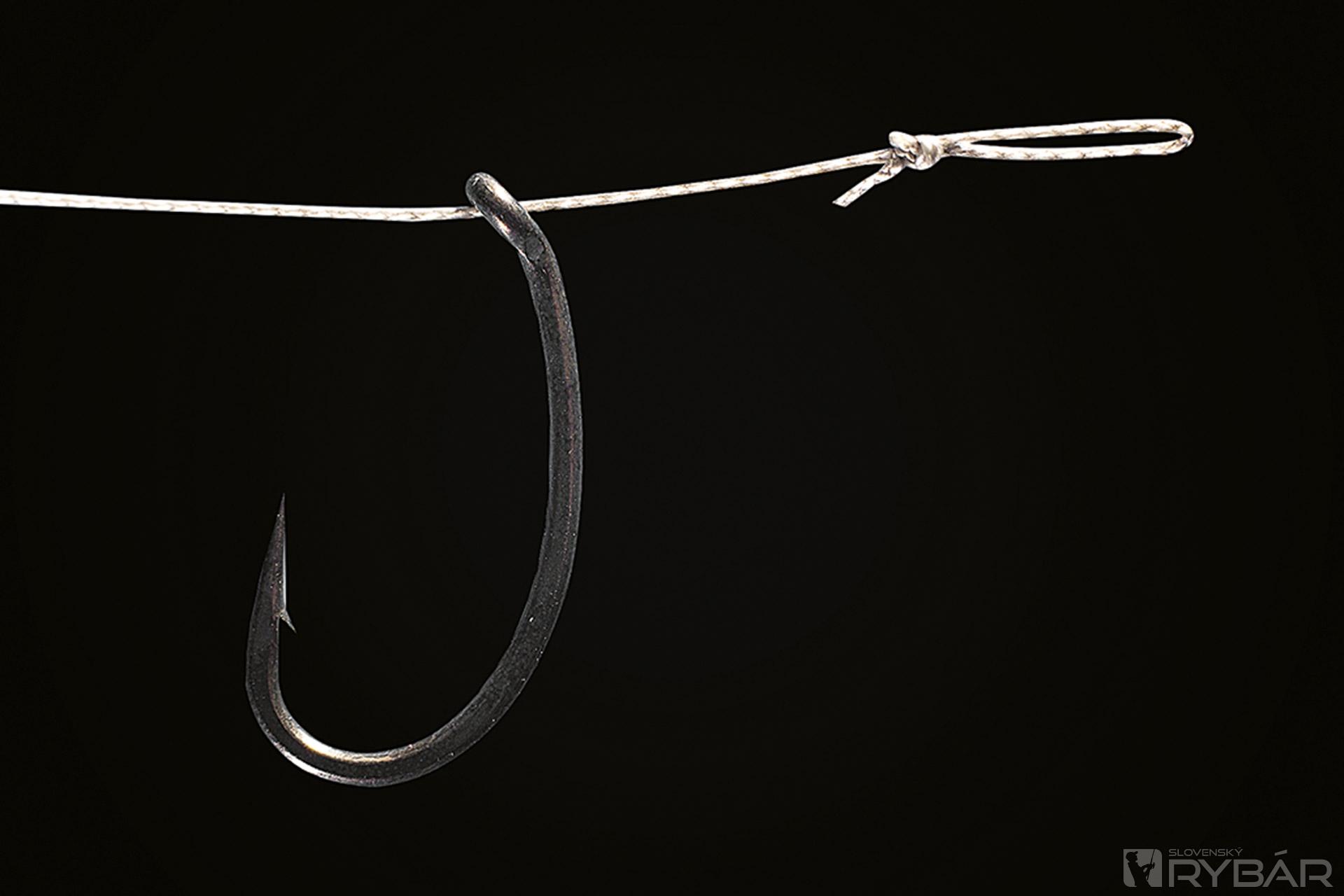 2. Vnútornou stranou háčika prevlečieme splietanú šnúru a na jej konci vytvoríme slučku pre navlečenie nástrahy.