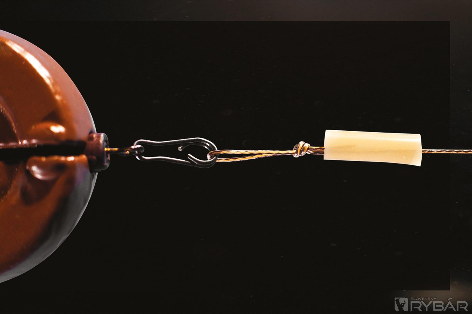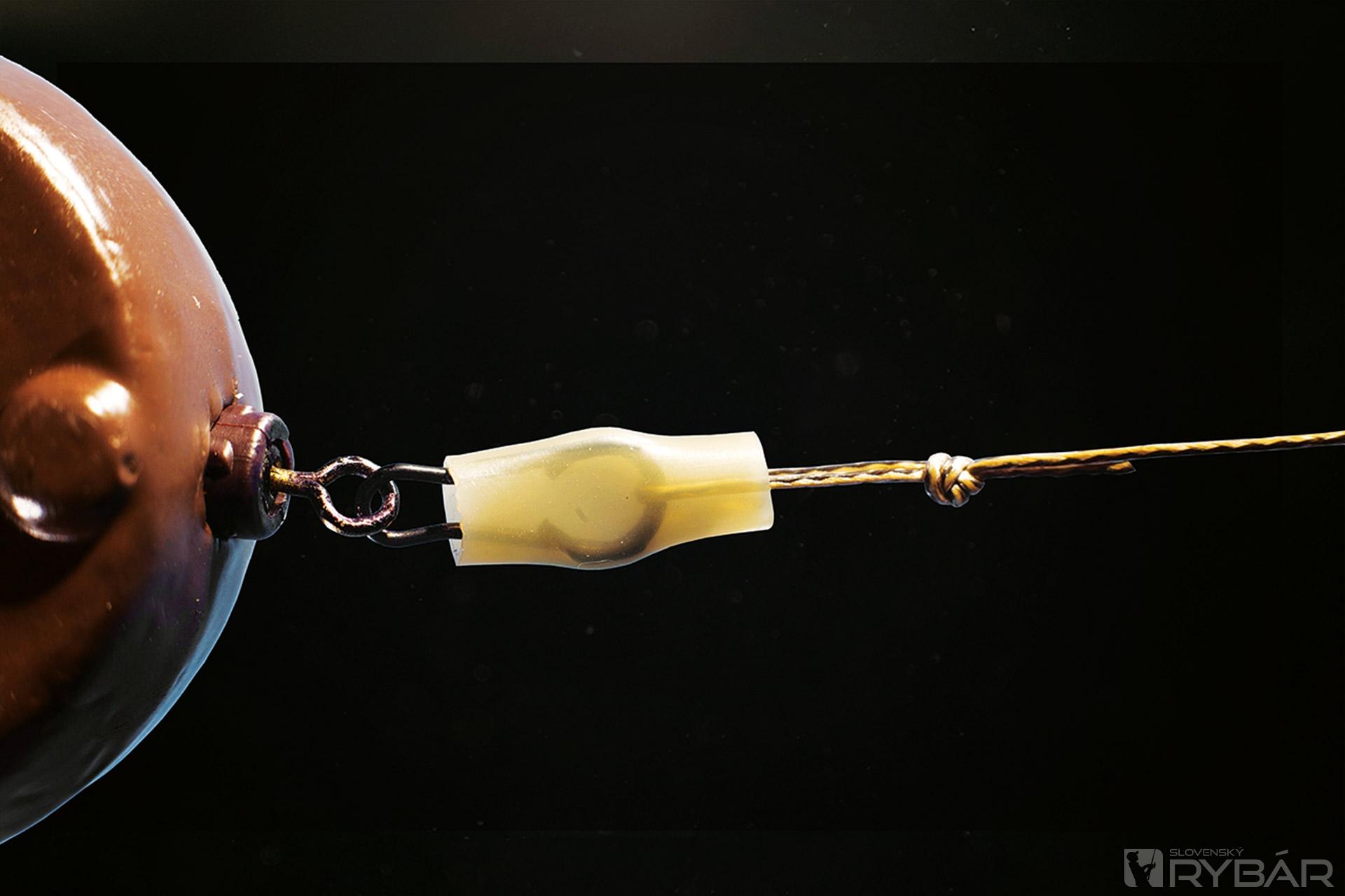 9. Zaistíme silikónovou bužírkou. Pri nahadzovaní je vhodné použiť dlhší anti tangle prevlek proti zamotaniu.
