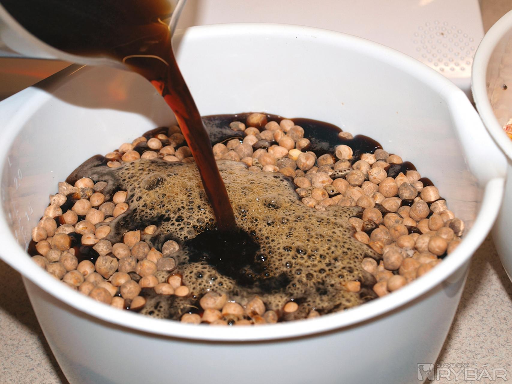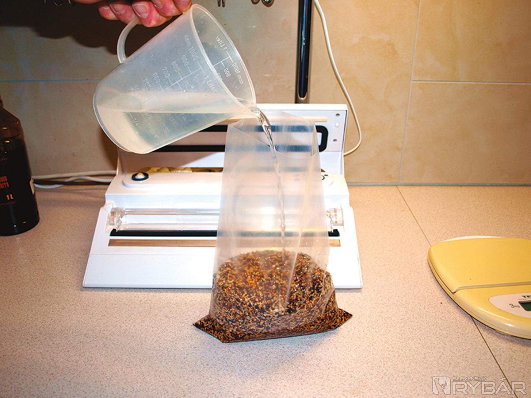 2. V prípade mikro partiklov nepoužívam žiadne arómy alebo podobné prísady, veď tieto obilniny už samy o sebe obsahujú veľké množstvo éterických olejov, ktoré ryby doslova zbožňujú – 500 gramov zasáčkovaného partiklu zalejem so 600 ml horúcej vody.