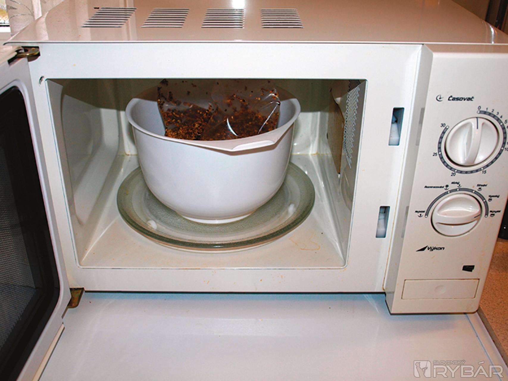 5. Teraz celý balíček vložím do mikrovlnky a v závislosti od výkonu prístroja, zabalený partikel nechám variť max. 5 minút na najvyššom stupni. Celý proces pozorne sledujem, a keď voda v zatavenom vrecku začne vrieť, balíček vyberiem z mikrovlnky. POZOR! aby ste sa náhodou nepopálili, cez malý otvor totiž vychádza horúca para s teplotou 100 °C.