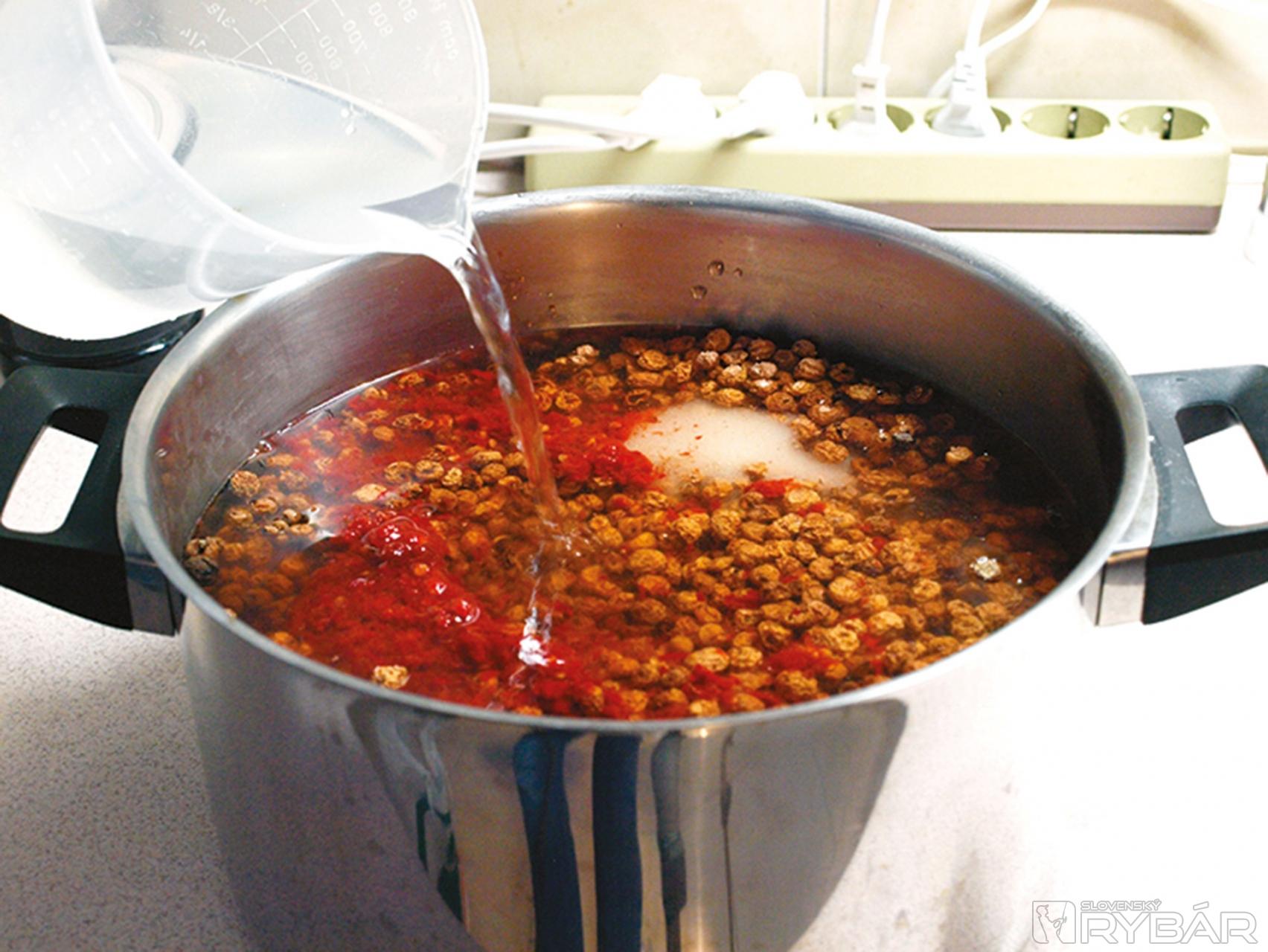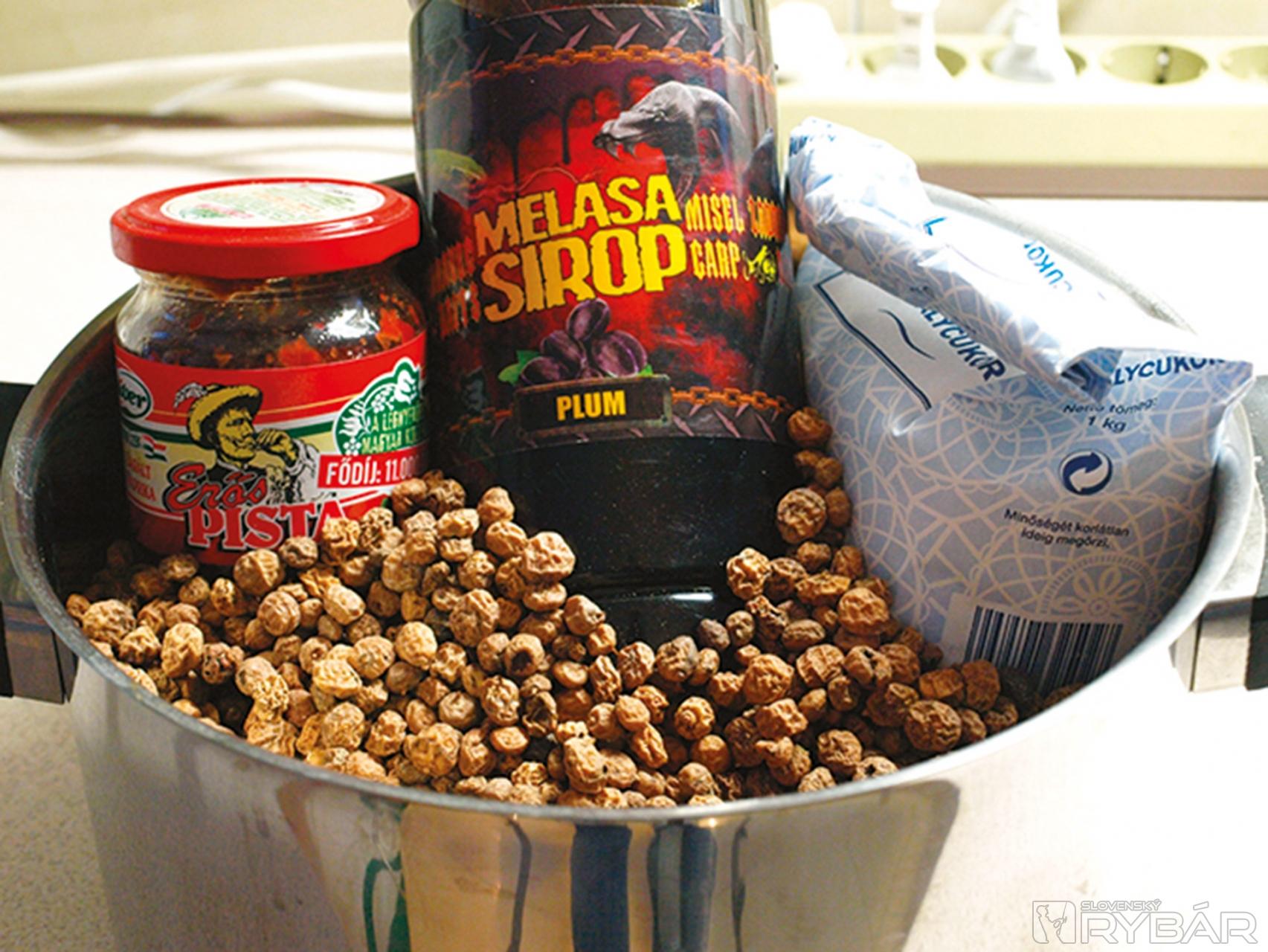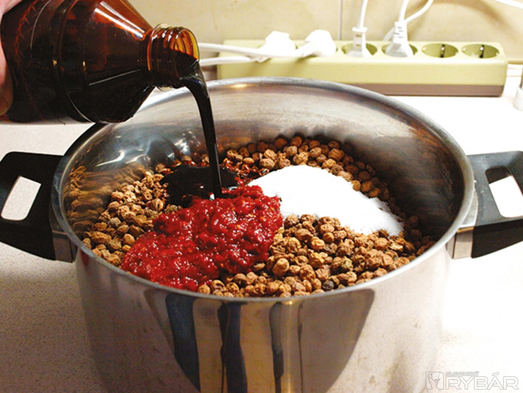 1. Tigrí orech je každopádne nutné namočiť a následne uvariť. Ja osobne to robím nasledovne: 3 kg tigrieho orechu zamiešam s 200 g štipľavej papriky Erős Pista, 200 g cukru a 300 ml melasy.