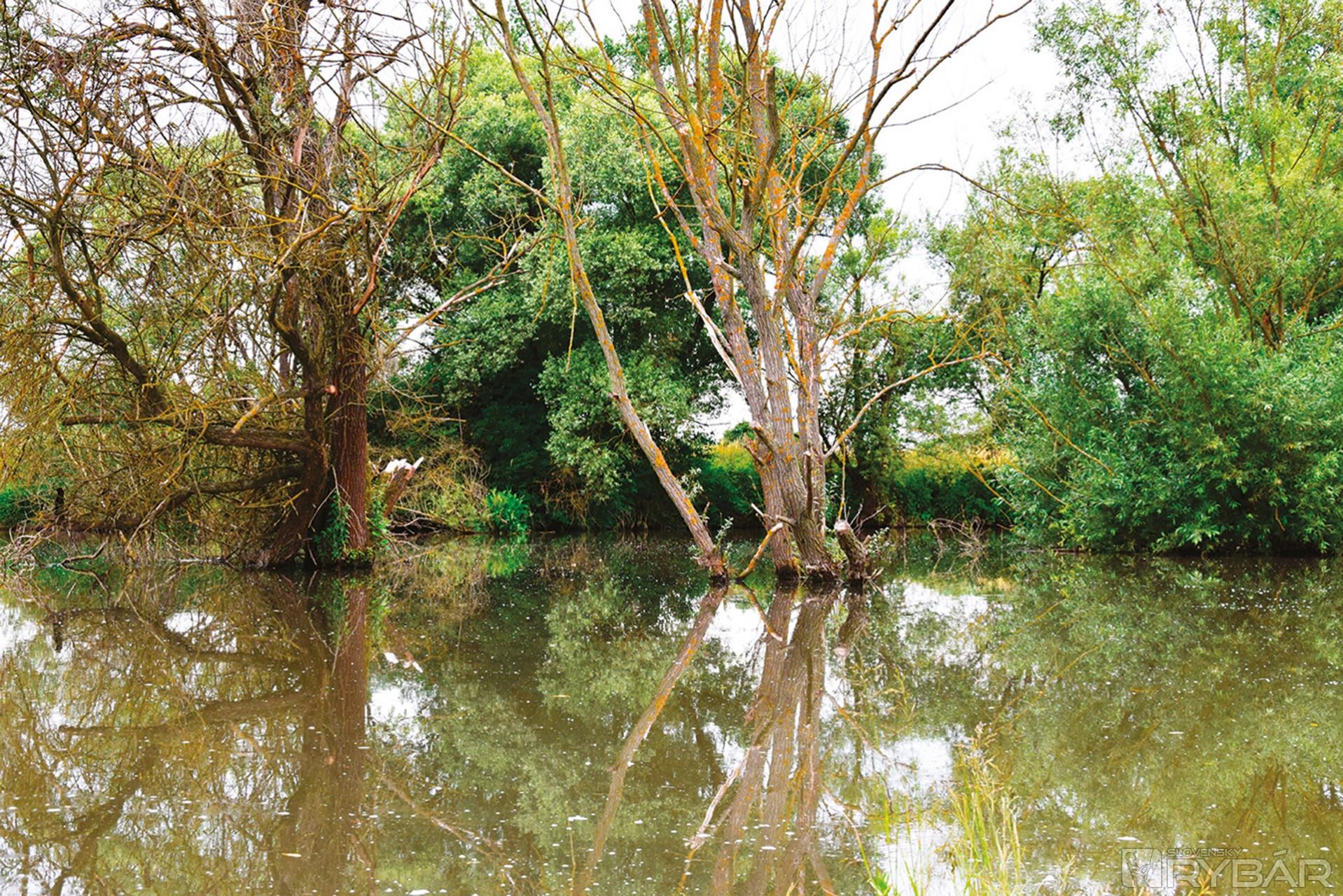Stromy vo vode na úseku Slanej, kde sme lovili.