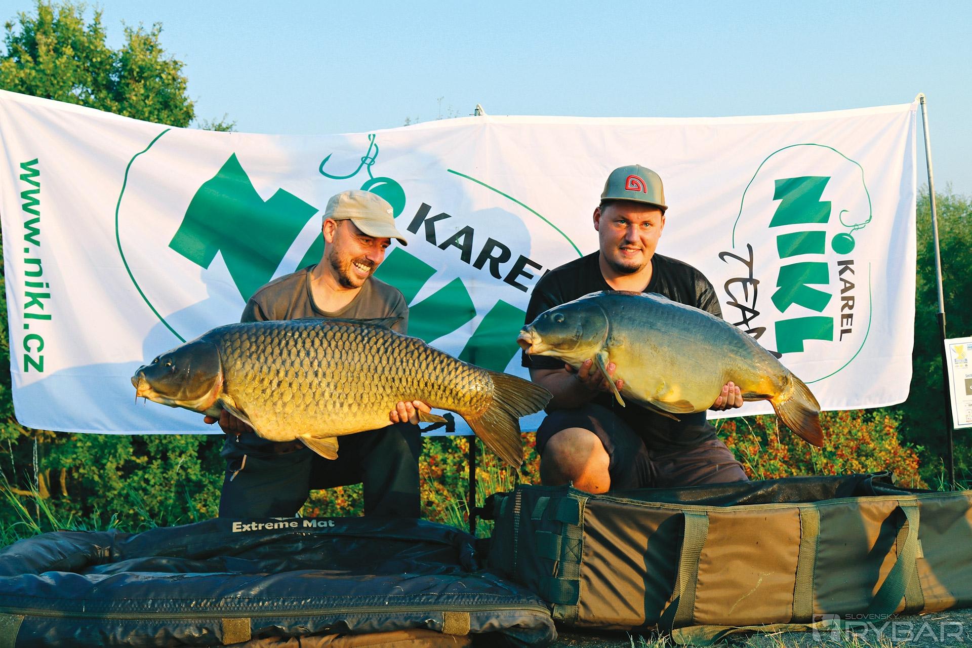 Vedľa nič, my ideme na 100 %, robíme zábery a veľkosť rýb sa ani nedá odhadovať. Karel skúša položiť prút na blízku cestu k potopenému kmeňu. Ešte nie je ani polnoc a my si voláme s ostatnými CRU tímami, tí sú na tom zatiaľ lepšie, ryby zdolávajú úspešne. Doberáme sily, terén máme náročný, horúčava je stále na umretie a tieň hore na hrádzi nie je. Únavou zaspávame. Píp, píííííp! Karel má záber práve z cesty! Chlapci už sú na vode dlho, ale kotvičku použili konečne prvý raz! Kapor sa už dostal na hladinu, ešte kúsok a je tam! Chvíľu na to sa už radujeme spoločne s „maršálmi“ pri váhe, ktorá ukazuje 19,90 kg! Máme prvú vytúženú top rybu! Andy a Roy sú priateľskí a fajn, odvádzajú prácu na jednotku a prorokujú nám ďalšiu veľkú rybu, šupináča cez dvadsať kg. Tretí deň Karel ml. stráca veľkú rybu, škoda! Nás do reality vracajú ďalšie straty rýb. Zase musíme niečo zmeniť! V noci Honzovi volá dobrý kamarát a tiež legenda tejto vody, Tomáš Blažek. Dáva mu pár rád, pretože vie, že o ryby prichádzame. Za tieto rady Tomášovi naozaj veľké vďaka! Nápad poupraviť zostavy sa ukázal ako správny a Honza nás posúva na lepšie pozície krásnym, doteraz najťažším lyscom 14,8 kg. Nadchádza večer, všetko máme pripravené a nasýtení zaspávame. Záber a letí sa na vodu! Boj je neuveriteľne dlhý a vyčerpávajúci! Kapor sa motá v zatopenom lese a nepretržite sa kotvičkuje, nádeje sa zmenšujú s viazaním ďalšieho a ďalšieho uzla, avšak kapra cítime, ešte tam je! Po náročnom rúčkovaní rozčesne nočné ticho prejav radosti. Podoberáme druhú neskutočnú rybu, šupináča s hmotnosťou 20,1! Paráda! Maršali to snáď tušili. Každý prút dostane po panáčiku pre vodníka aj sv. Petra a ako maršali dorazili, tak sa rozbieha Honzov prút! Na druhú podložku sa pozrie nádherný šupináč, a to s hmotnosťou 16,5 kg! Sme prví? Naozaj? Radosť máme, ale uspokojenie je nepriateľ! My chceme ďalej tvrdo pracovať a vieme, že výsledok máme výborný, však tretia ryba môže ešte všetko zvrátiť! Ďalší deň je o nás nevšedný záujem, hlavne o Karla je enormný! Veľa ľudí sa u nás zastavuje a sleduje podrobne naše počínanie. My sme vo väčšej permanencii a o to viac, chceme každému vyhovieť, či už s prosbou o foto, rady a pod. To všetko nás, samozrejme, stojí ďalšie cenné sily namiesto odpočinku. Ale sťažovať sa? Vôbec nie! Všetkým nesmierne ďakujeme za priazeň, podporu a napokon i dary a užitočné tipy.