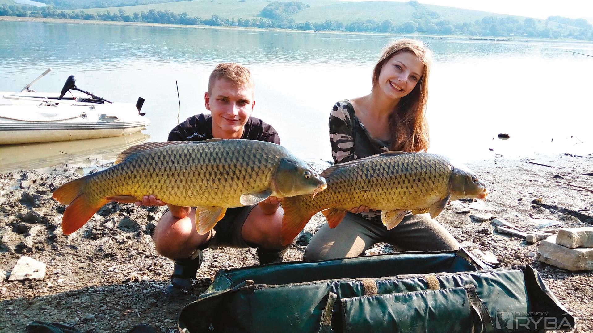 Na kŕmenie sme si prihotovili pekne nasiaknuté boilies s tekutou potravou. Všetky nástrahy sme obaľovali v totožných pastách. Išlo nám o maximálnu atraktivitu. Sestra si vybrala nástrahy nie podľa druhu, ale podľa toho, čo sa jej farebne páčilo. Vznikla kombinácia The Krill s oranžovou popkou Peach & Pepper a Manilla so žltou popkou Pineapple & N‑Butyric. Ja som zvolil svoju osvedčenú patentkovo‑krillovú kombináciu a 2x20 mm patentku. Tri prúty sme rozmiestnili na rôzne miesta. Na hranu koryta, medzi vŕby a tretí ku stromu. Nikde nebola hĺbka presahujúca 40 cm. Jeden svoj prút som obetoval a vyviezol ho priamo do koryta. Prvý záber dostala Simona a na krillovo‑broskyňovú kombináciu zdolala prvého malého šupíka. Druhý záber bol už o niečom inom. Po 10 minútovom súboji som podobral Simone 82 cm torpédo. Kapor ju poriadne potrápil, ale nakoniec zvíťazila ona. Gratulujem jej k osobáku so slovami, že ja to takto dlho nenechám. Tretí záber dostala opäť ona a na The Krill si zapísala dorastenca. Popritom sme si upiekli špekáčiky a aj niečo vypili. Proste pokoj pri vode. Keď sme si políhali na ležadlá, prihlásila sa razantná jazda na môj prút. Z brehu som zdolal 79 cm bojovníka. Pochutnal si na patentke s ružovým krillovým bonbónikom. Dve krásne ryby boli vonku a všetci sme už žiarili maximálnou spokojnosťou.