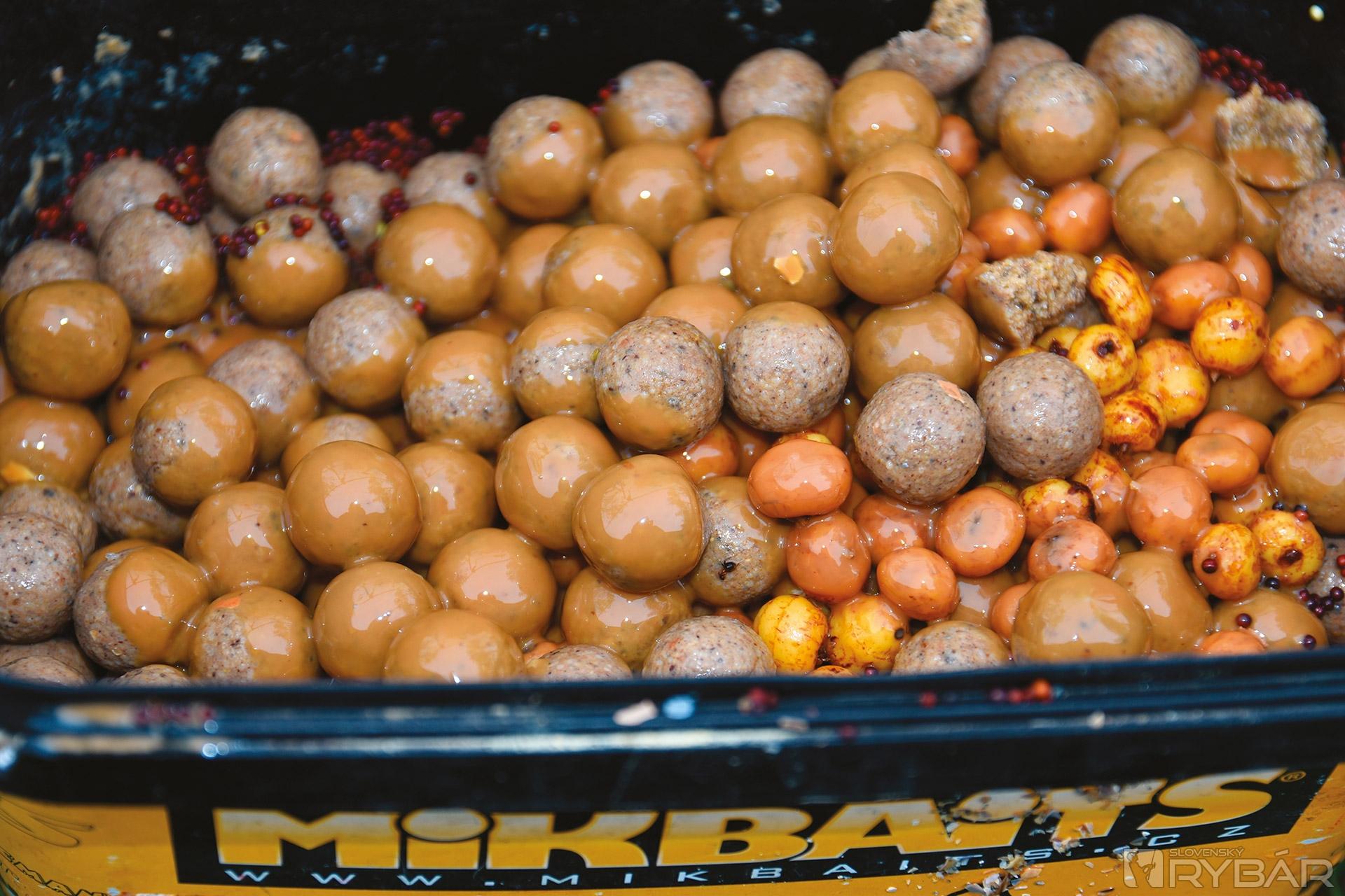 V chladnejšej, počas októbra a neskôr, potom Fanatica Losos & Ráček & Asa alebo Fanatica Koi. Určite by niekto namietal, že pri nutnosti vnadiť vo väčšom objeme sú tieto boilies pomerne veľkou investíciou. V tom prípade je vhodné doplniť ich lacnejšími, ale stále vysoko kvalitnými boilies Krvavý huňáček, Krab & Sardinka alebo niektorú z príchutí radu Multimix Classic. Aspoň časť by však – a to najmä v najbližšom okolí, kde kladiete alebo nahadzujete montáž – malo tvoriť boilies, na ktoré chytáte. Odhadnúť, či bude lepšie boilies dipované, alebo bez akýchkoľvek úprav, či na dno či panáčika atď. atď., je vopred veľmi ťažké. Preto je dobré mať so sebou rôzne varianty. Snažím sa mať vždy aspoň pár guľôčok druhu, na ktorý budem chytať, naložené v dipe. Môžete skúsiť aj nejaké vylepšenia alebo svoju variáciu tekutých zložiek. Napríklad pridať niekoľko kvapiek Black Pepper, Cesnaku alebo iného esenciálne oleja. Inokedy zase pomôže sladidlo Talin, či niektorý z kúzelníkov od Nutrabaits. Vynikajúce sú tiež tekuté korenené potravy, ako je Robin Red, Red Venom či Hot Chorizo. Občas mi pomohli aj prírodné extrakty – Patentkový, GLM, Lososový či Tuniakový. Skrátka, chce to skúšať.
