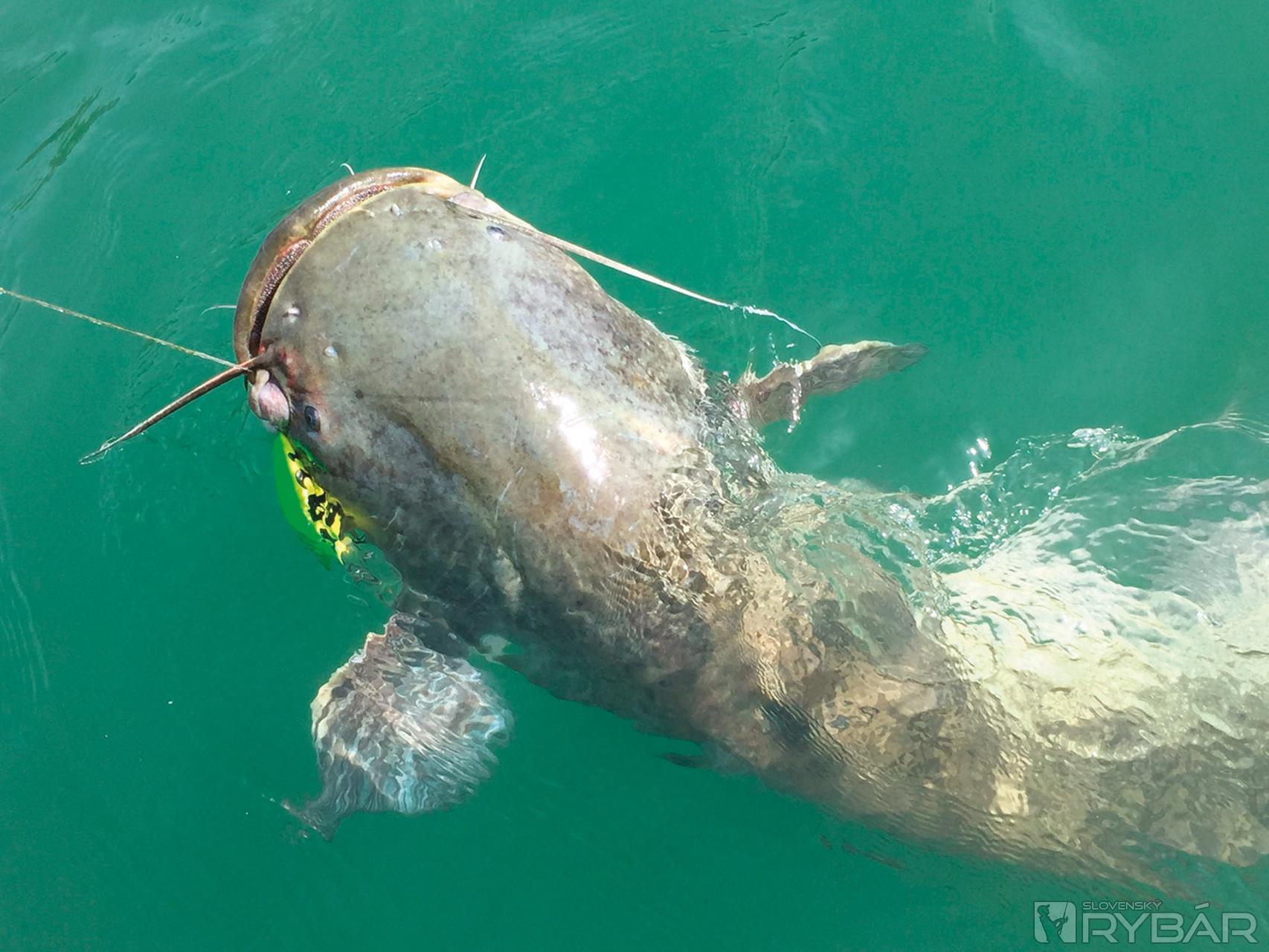 Prvé ryby prišli z asi 3-metrovej vody pri dlhej zákrute. Tráva bola až 10-15 metrov od brehu a ryba sedela priamo v nej. Agresívny crankbait od Salmo si robil svoje, kým sa neocitol v papuli prekrásnej ryby. A tu sa to začalo. Rýb bolo všade, ale vytrhnúť nástrahy z trávy ešte pred tým, ako by našli nejaký konár, či väčší kameň bol problém. Prvý deň sme stratili viac ako 10 veľkých gúm, vobler som dokázal vždy vyslobodiť. Večer som musel prešpekulovať systém, aby som obišiel jigovú hlavičku a mohol zdolávať na priamo. Dobrý jig s cca 20-gramovou záťažou sa skoro ani kúpiť nedá, preto som dostal nápad s čeburaškou a malou zmenou. Tu sme už dorazili skoro ráno, ďalšie miesto akoby z včerajšej knihy. Ja osobne už preferujem gumu, verím nástrahe a tej mojej teórii s trávami. Rýchlo sme prišli na to, že to funguje a za necelých desať minút mi ryba trhá udicu z ruky a plnou parou páli cez zeleň. Tomáš len pozerá, čo je to za obludu, však to ťahá so sebou pol hektára šalátu. No a práve to mi spravilo škrt cez rozpočet, šnúra nevydržala a odtrhla sa, sumca som mal na palici možno 20 sekúnd. Nenormálna sila, konštatujeme a v momente záberu zapínam elektromotor a skúsime rybu vytiahnuť čo najďalej preč od toho bordelu. Druhý adept bol Peter, jemu zhruba na polceste od brehu prišiel krásny kopanec a ryba, ako už klasicky, sa vybrala späť do zátišia. Chvíľku to aj mne trvalo, ale zapol som elektromotor a plný kotol dozadu. Ale neskoro, šnúra bola o niečo omotaná a očividne sa lámala na jednom bode, pričom ryba si brala vzácne metre so sebou. Všetko späť! Smer zelina, to miesto kde sa to seklo. Peter jemne zdoláva, aby sa mu šnúra neodtrhla, ale na šnúre cíti asi kameň. Ja korigujem loď a Tomi nám fandí, aby sa nič nestalo. Keď sa dostanem nad bod, kde sa šnúra láme, vidím pod vodou veľký zarastený kameň, cez ktorý sa točí Peťova šnúra. Hovorím mu, nech na chvíľku povolí, ja skúsim trhnúť rukou opačným smerom. Sám sa akcie trocha bojím, ale radšej ručne, je to istota. Rozohraná akcia, Peter povoľuje na povel a ja trhnem. Šnúra je opäť voľná vyrážame za rybou! Tá je už mimo problémovej zóny, takže je naša! Keď ju dobehneme, už aj vidíme cca aká je veľká, brázdi pri dne, čo krásne aj vidno. Ak pridvihneme, tak sa začne krútiť a skúša si vytrhnúť háčik z papule. Vrtením však dokáže len to, že ju šnúra komplet omotá a vysilí. Na hladinu sa dostane ako šunka, pekne omotaná. Aktuálne naj ryba chlapcov, niečo nad 170 cm.