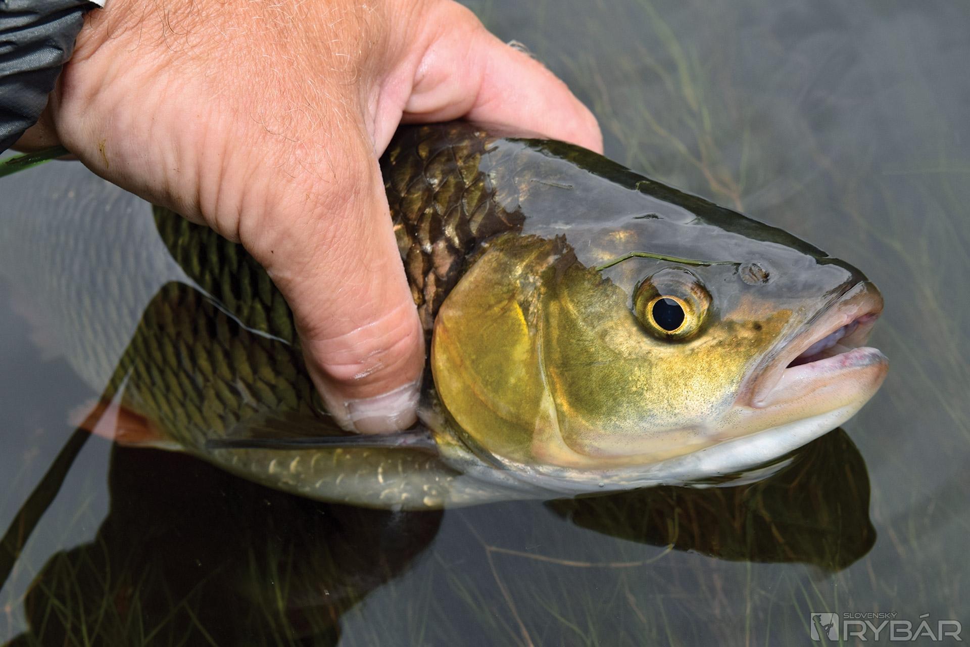 Drobný vobler dopadne do vlniacej sa vody. Vyrovnám vlasec a stačí niekoľko otočení kľučkou navijaka a už je tu záber. Nástrahu zobrala menšia ryba. Druhá zaseknutá už je väčšia. Ryba vyštartuje proti prúdu, plytčinu nad tôňou doslova preletí a už je v miestach, kde sa tok zužuje a je celý potiahnutý vodným vlasom, do ktorého sa priamo zavŕta. To ale bola rýchlosť! Pomaly sa brodím k rybe, nechcem ju vystrašiť. Mohla by začať zase vyvádzať a pretrhnúť mi vlasec. Už som blízko. Stále tam je. Voda aj s tou zelenou parádou sa mierne vlní. Zatiahnem za vlasec – nič. Musím preto kúsok po kúsku žabí vlas vytrhať a odstrániť, až rybu úplne uvoľním. Zdá sa byť pokojná. Lenže to je omyl. Sotva trochu viac potiahnem za vlasec, znovu vyrazí a je v tom zelenom pekle zas. Musím na to inak. Keď ju opäť čiastočne uvoľním, pripravím si podberák. Dám ho až k rybe a len čo ju uvoľním, rýchlo ju vtiahnem do podberáka. V ňom potom vyčíňa ako pomätená. Nástraha sa našťastie z jej papule uvoľní a odletí nabok. Keď podberák položím čiastočne do vody, upokojí sa a ja si ju môžem konečne prezrieť.